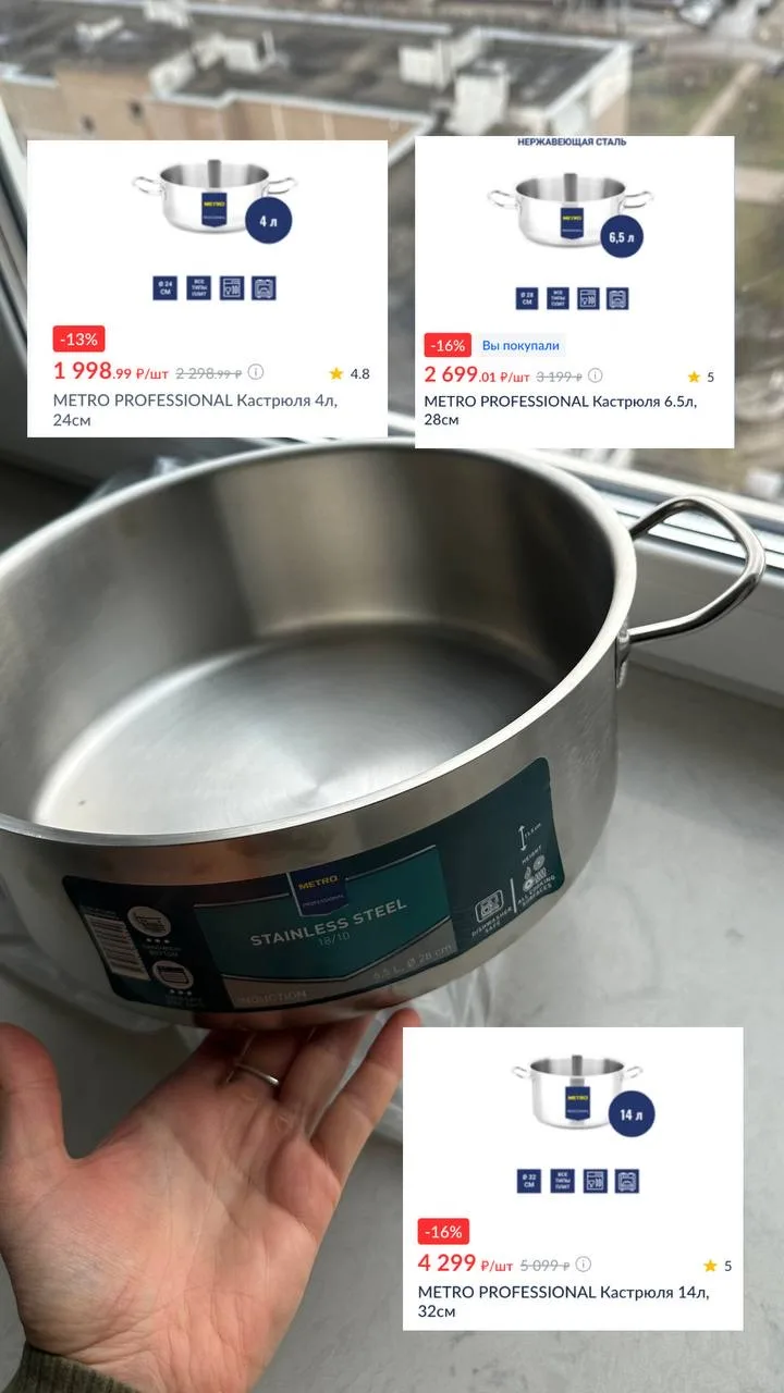 Давно мечтала о такой шикарной профессиональной кастюле. Увидела, что на серию metro professional сейчас хорошие скидки в METRO и купила новую кастрюлю 6,5 литров. Привезли, она шикарная! Тяжеленная сталь, толстенное дно. Можно на ней и жарить и тушить и варить и даже в духовку ее ставить. Очень довольна.