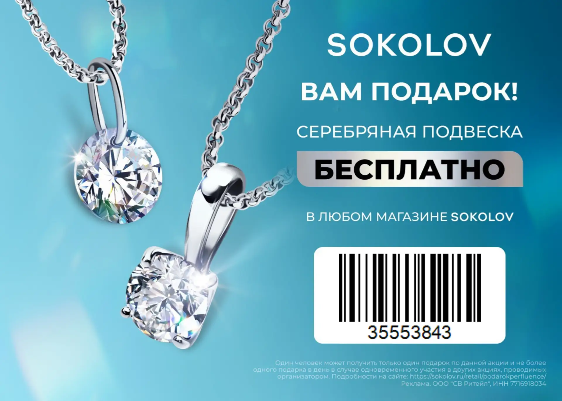 Покажите штрихкод на кассе в магазине SOKOLOV и получите подвеску в подарок.
