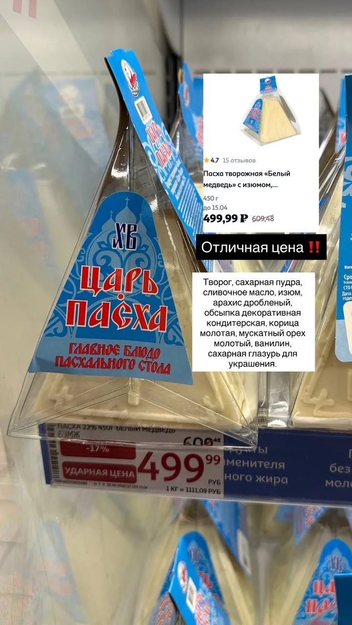 ✨Творожная пасха «Белый медведь» с хорошим составом по отличной цене.