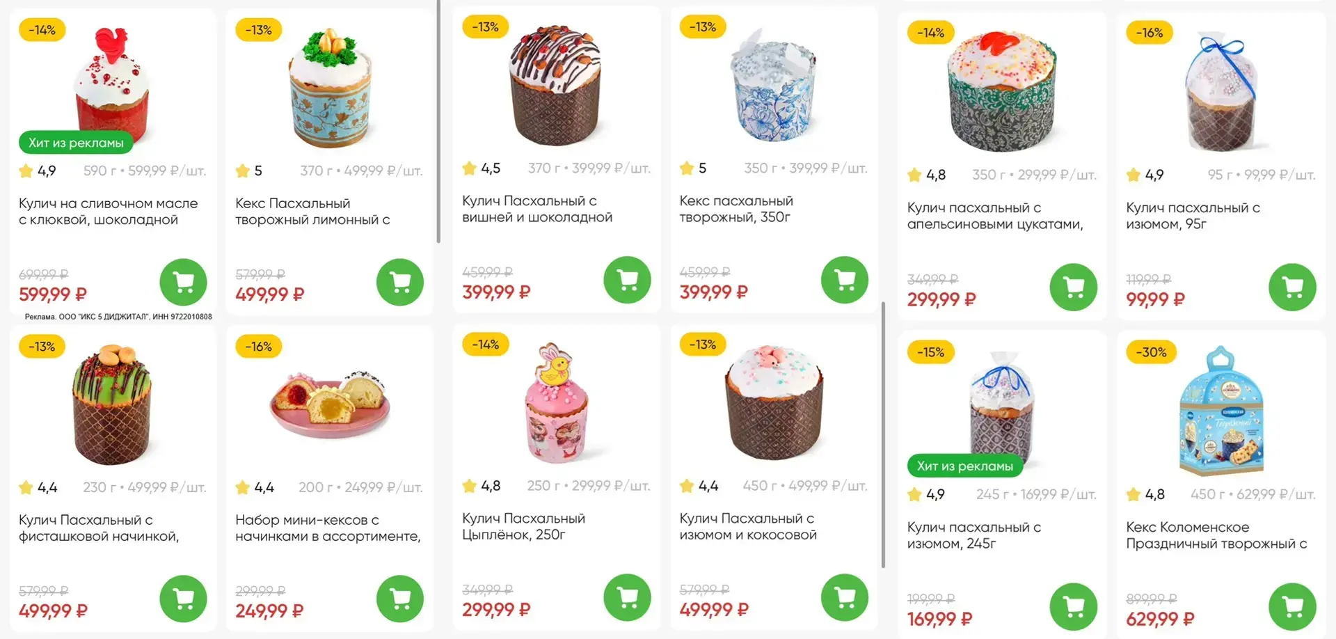 Ашан: смотрим пасхальный ассортимент. В Ашане очень много куличей их собственного производства, они есть и на доставке.