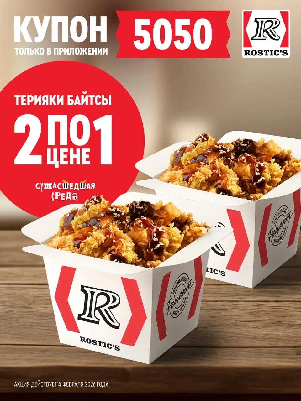 ROSTIC’S «терияки байтсы» два по цене одного, с купоном 5050👈