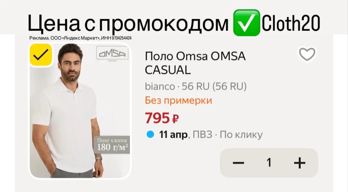 Поло OMSA выгодно на Яндекс маркете с промокодом ✅Cloth20