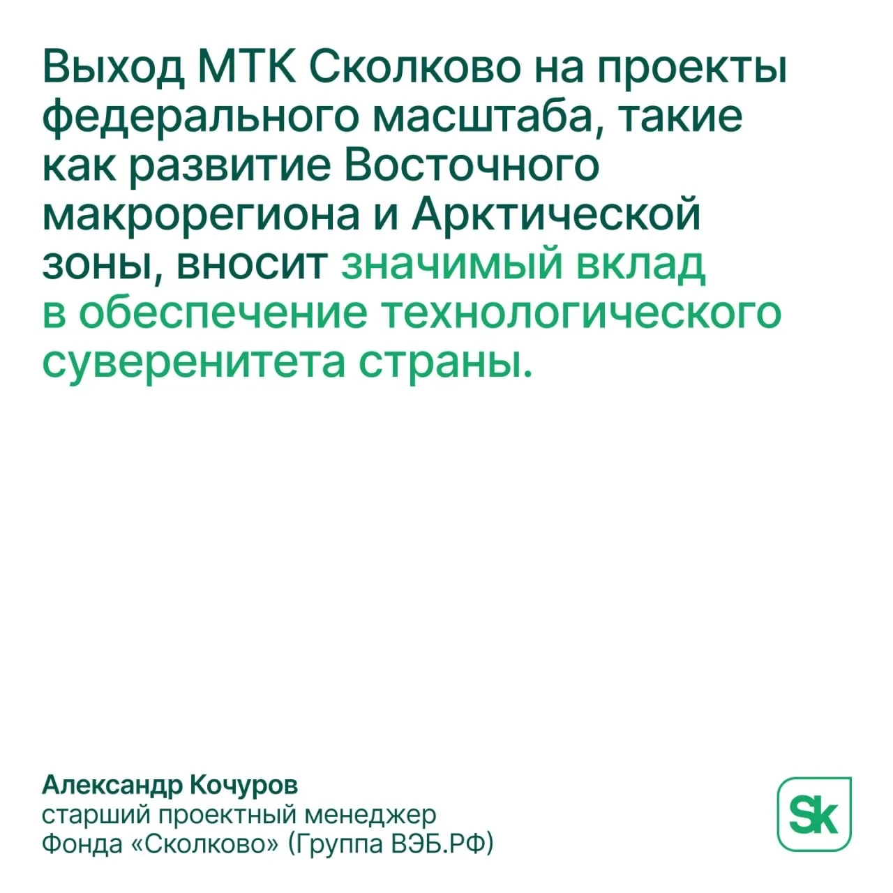 Фонд «Сколково» (Группа ВЭБ.РФ), как крупнейший инновационный центр России, активно поддерживает такие инициативы, обеспечивая их масштабирование и распространение передового опыта на другие сектора экономики.