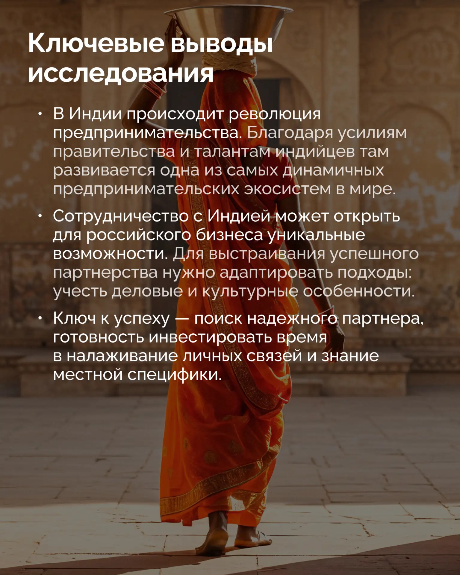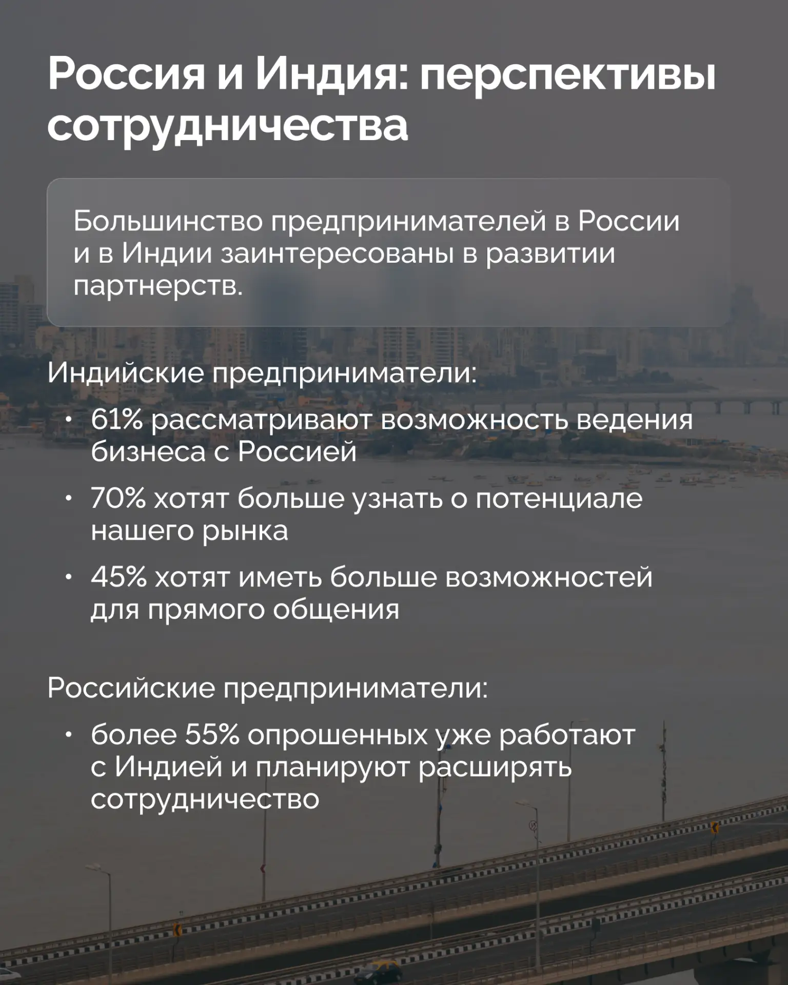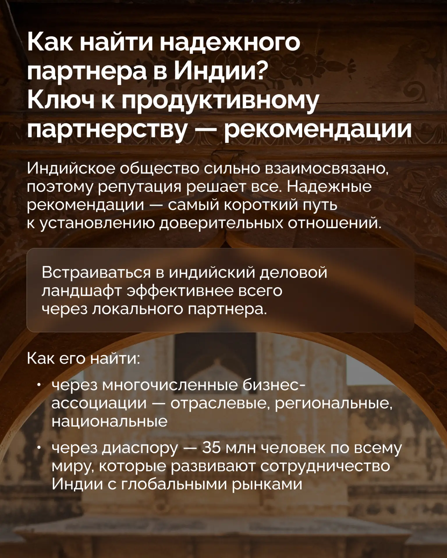 В 2024 году товарооборот между Россией и Индией достиг $70 млрд, цель к 2030 году — $100 млрд. Но несмотря на интерес к индийскому рынку, 52% российских предпринимателей считают местных партнеров ненадежными. Главная причина — дефицит прямых контактов и незнание местных правил игры.
