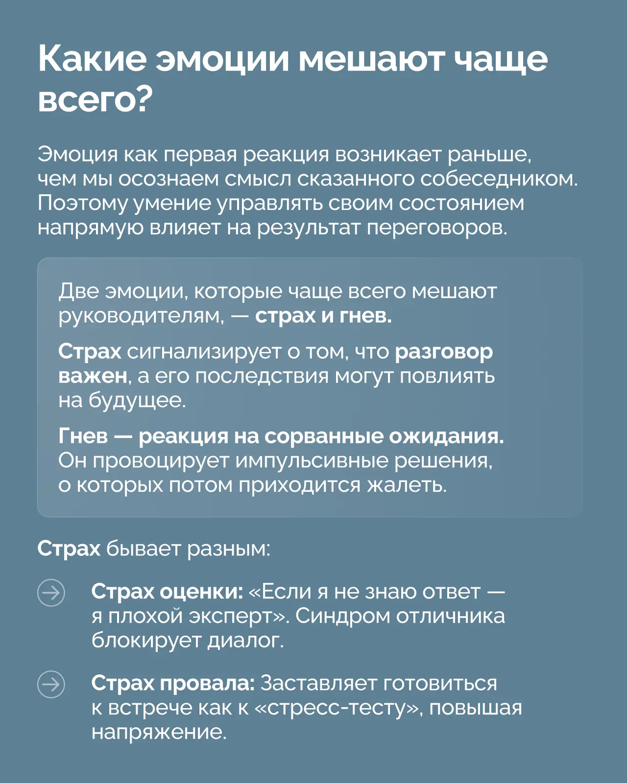 Не подавлять эмоции, а управлять ими: инструменты для руководителя в сложных переговорах