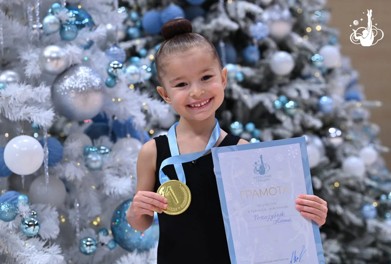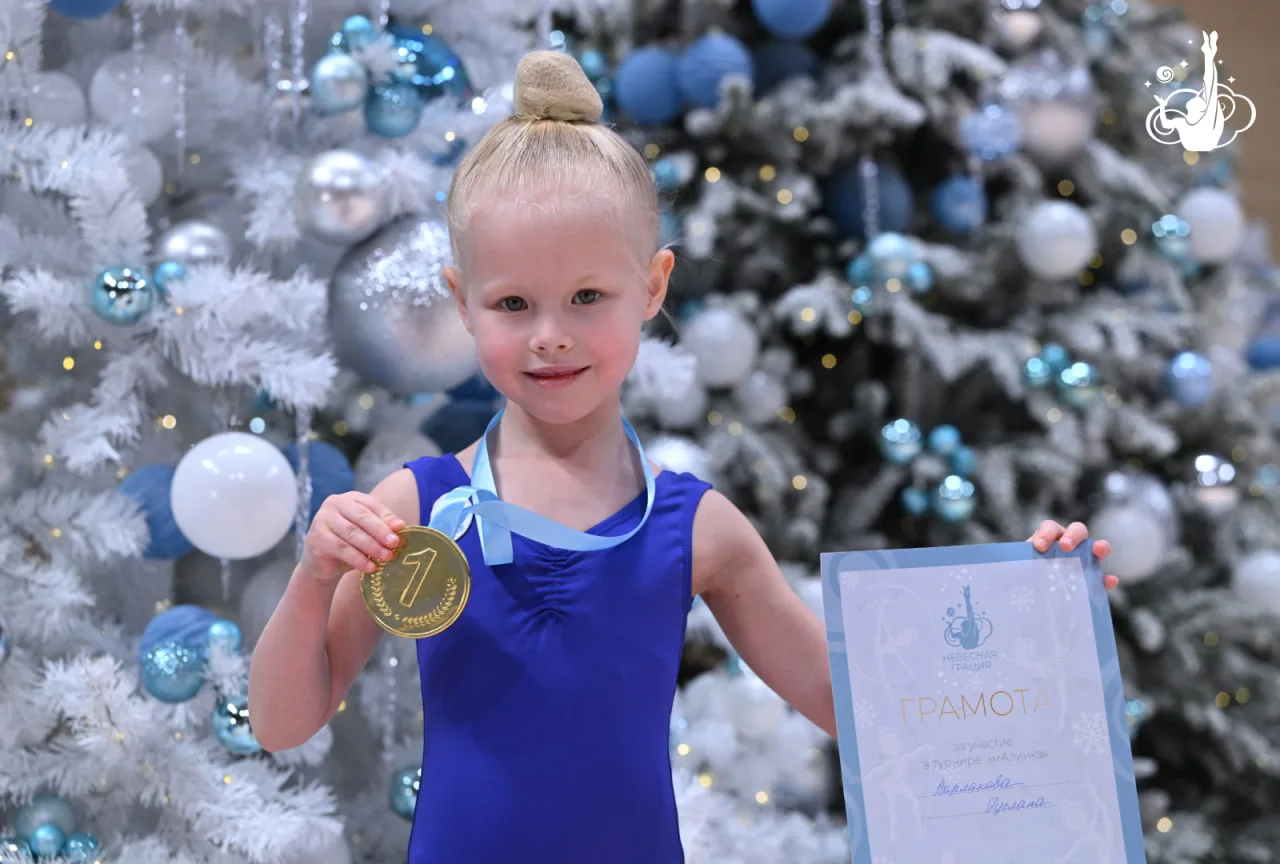 На турнире «мАлинка» Алина выступила в группе 2020 года рождения и получила титул «Мисс Грация».