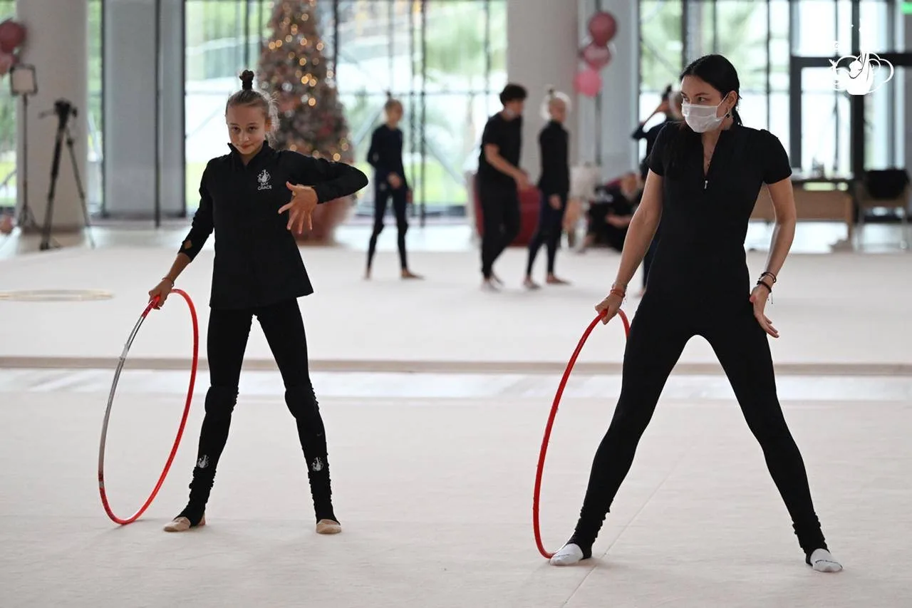 Чистота исполнения во многом зависит от работы рук. Делимся видео, как олимпийская чемпионка Алина Кабаева вместе с тренером Евгенией Елисеевой помогали Анне Вакуленко из Волгограда отработать движение рук на риске в упражнении с булавами.