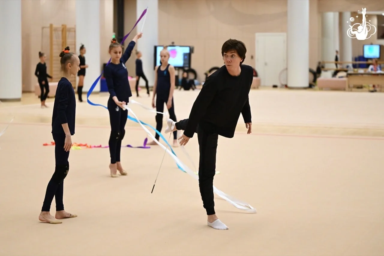 Во время работы над упражнением с лентой на Кубке России олимпийская чемпионка Алина Кабаева поделилась с Евой Кононовой из Тюменской области секретом, как достичь чистого и красивого выполнения риска.