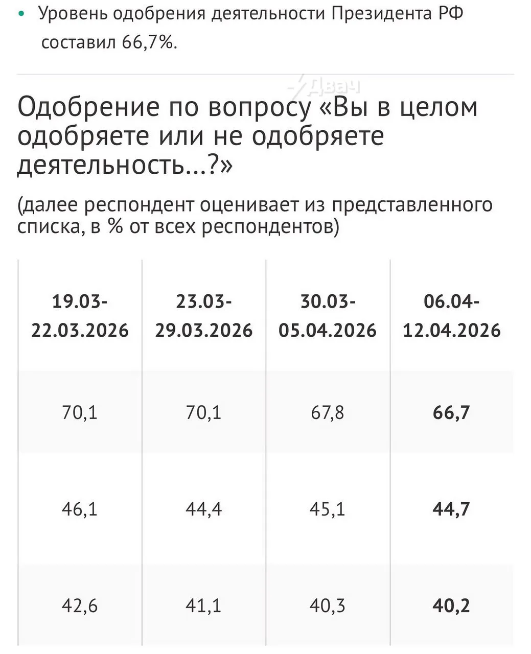 ВЦИОМ выкатил свежие цифры по уровню одобрения работы Владимира Путина: сейчас показатель составляет 66,7%.