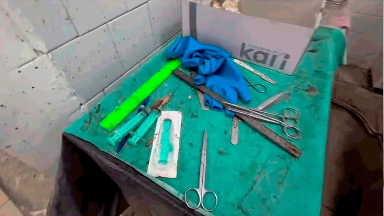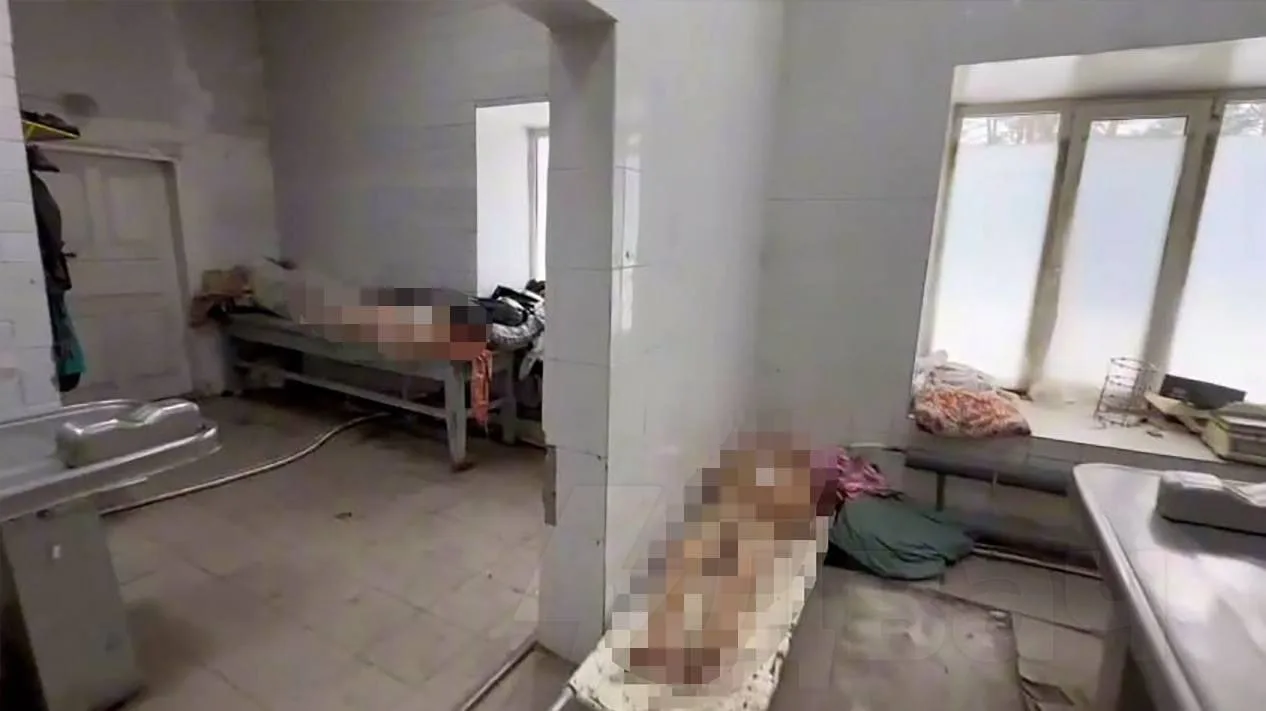 Внутри здания местные общественники засняли ужасающие кадры: всё завалено хламом, тела лежат прямо на полу, ржавые инструменты и препараты валяются в коробках из-под обуви, кушетки и пол грязные, а рядом с трупами — гниющие тряпки.