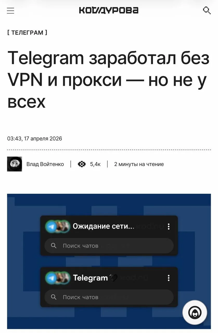 Telegram заработал в России без VPN и прокси, но только на андроиде и преимущественно у обладателей премиума — сообщает "Код Дурова"
