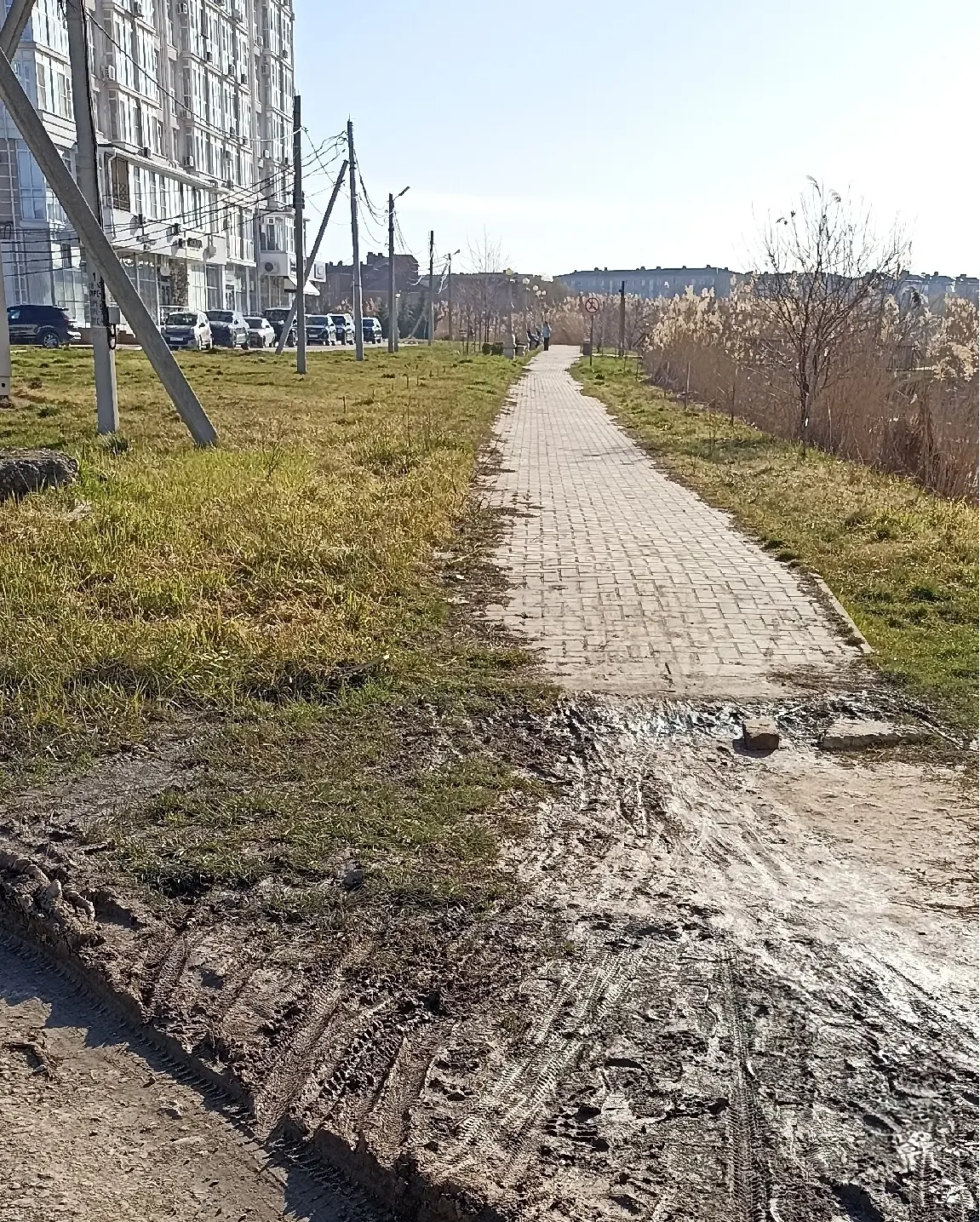 🗣 «Добрый день, это переход от ул. Колхозной к Ж/К Озерному, и к знаменитой Утиной Тропе, каждый день люди всех возрастов прыгают через грязь может можно засыпать грязь и лужи?»