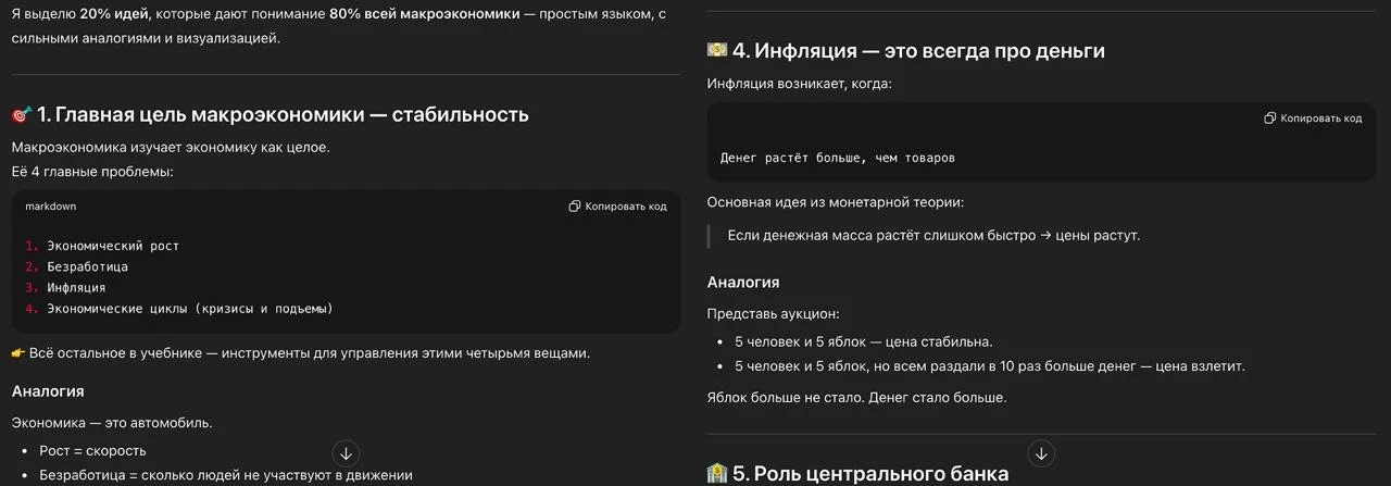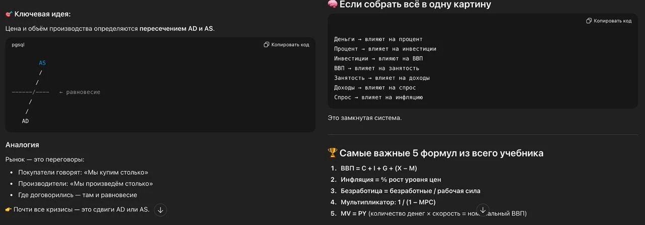 P.S. Для примера (результат на слайдах) я взял небольшую книгу «Введение в макроэкономику» и попросил ChatGPT выделить ключевые моменты.