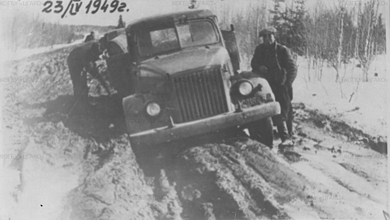 Весенняя распутица на грунтовой дороге Белая Холуница - Слободской. 23 апреля 1949 г.