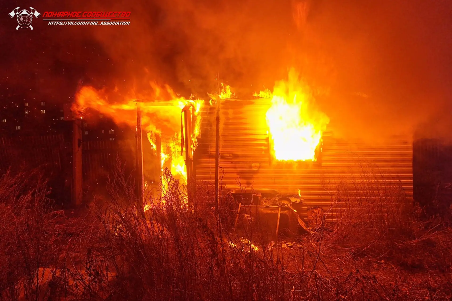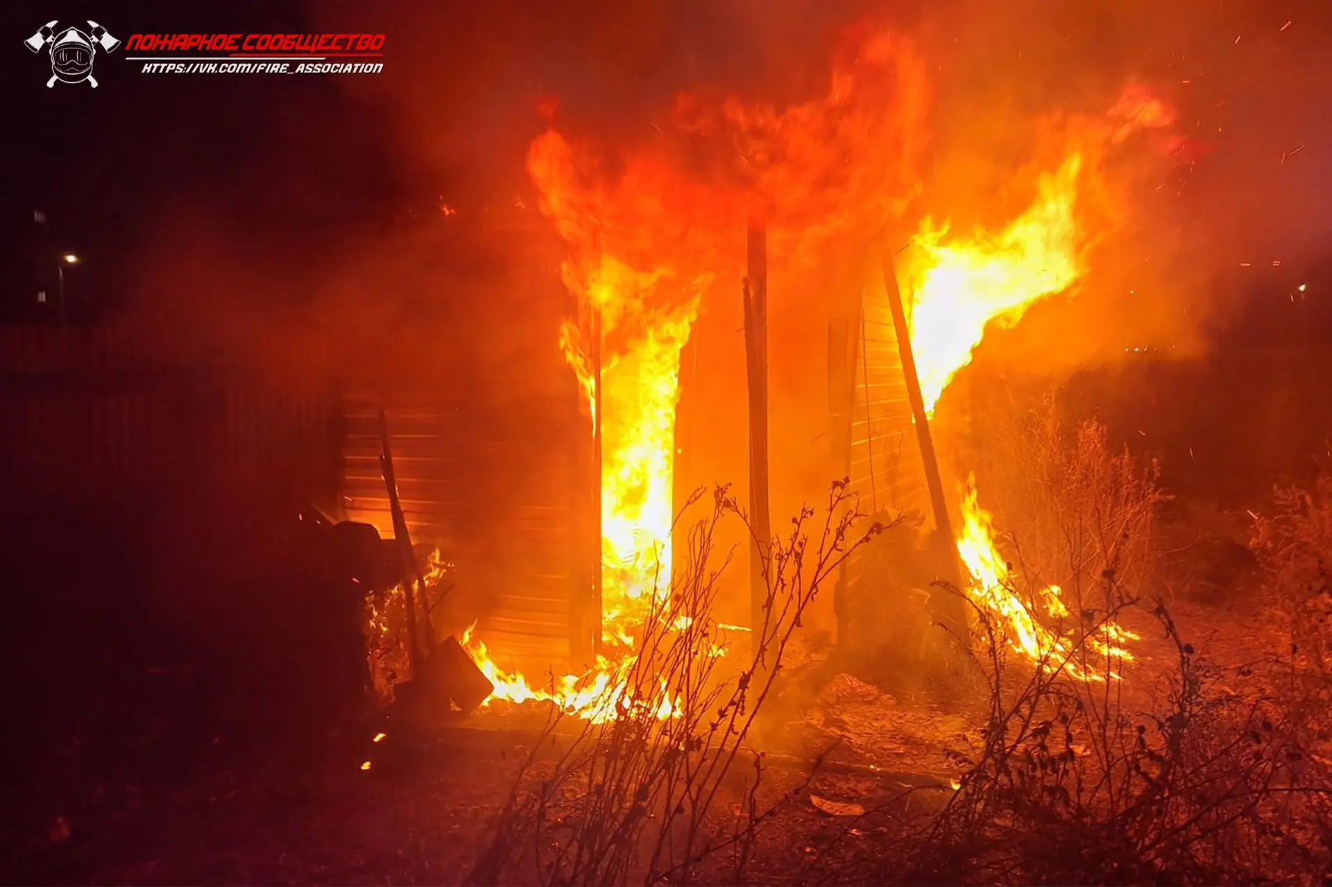 Поздним вечером поступило сообщение о том, что по адресу г. Салават, напротив ул. Ленинградской, 45 горит постройка.