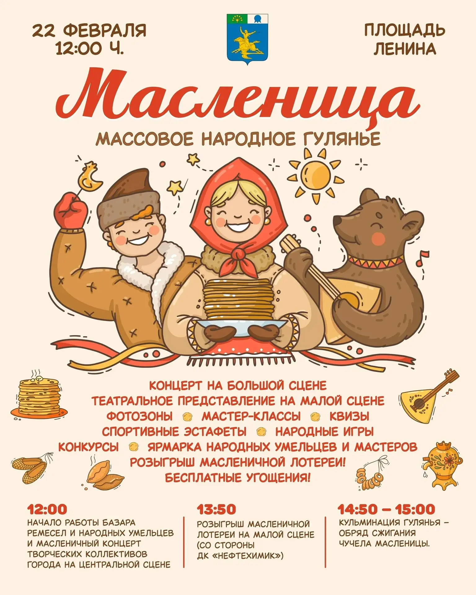 Приглашаем всех на празднование Масленицы 22 февраля в 12:00 на площади Ленина! Ждём вас для весёлых игр, вкусных блинов и отличного настроения! 🥞✨