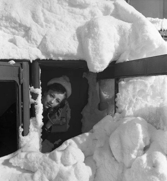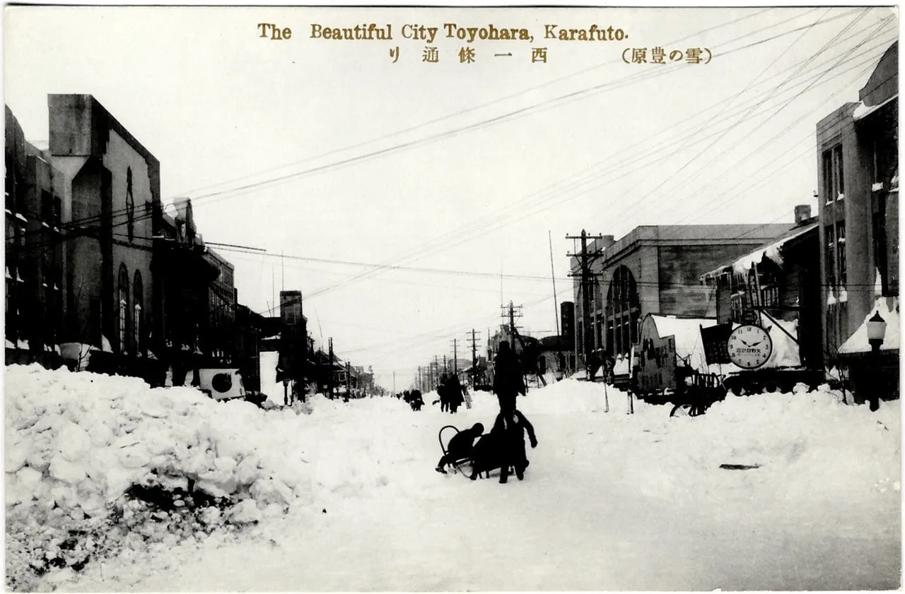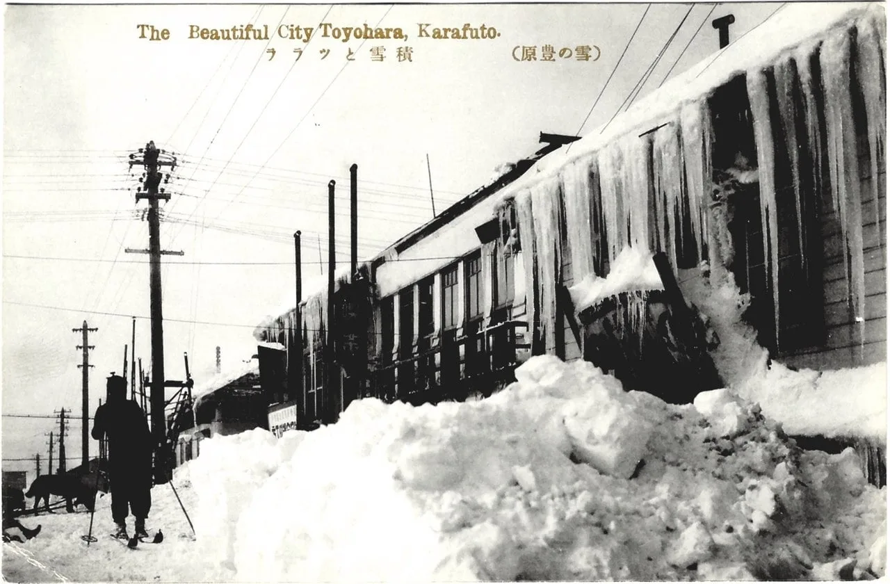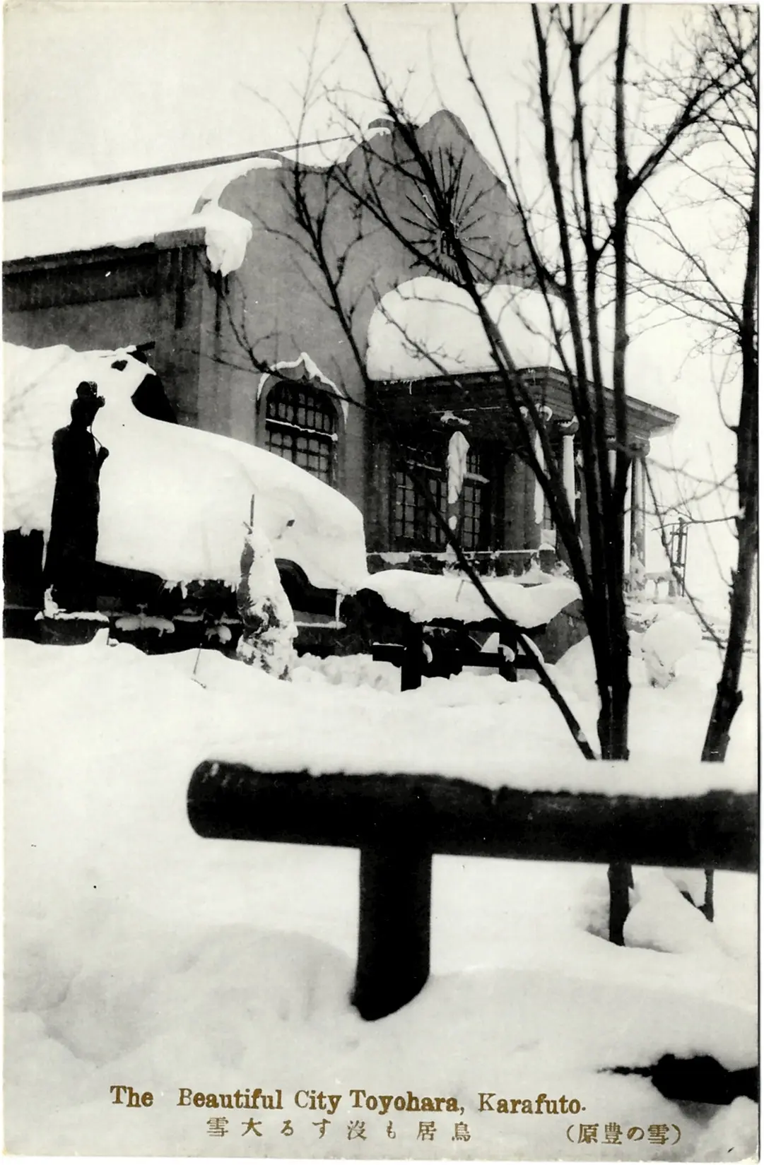 Карафуто. Тойохара (Южно-Сахалинск), снежная зима, дома, заваленные по крыши.