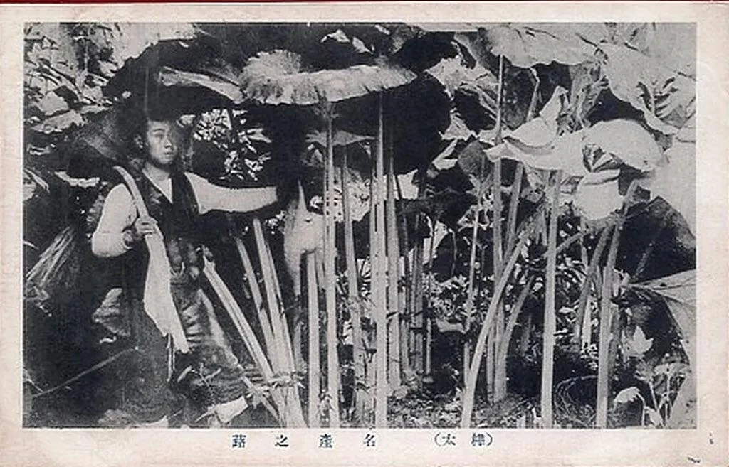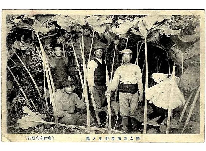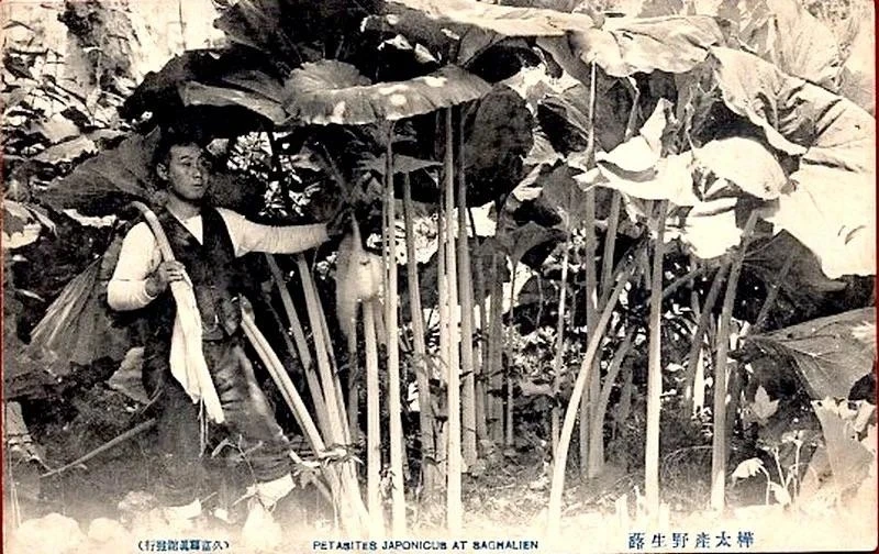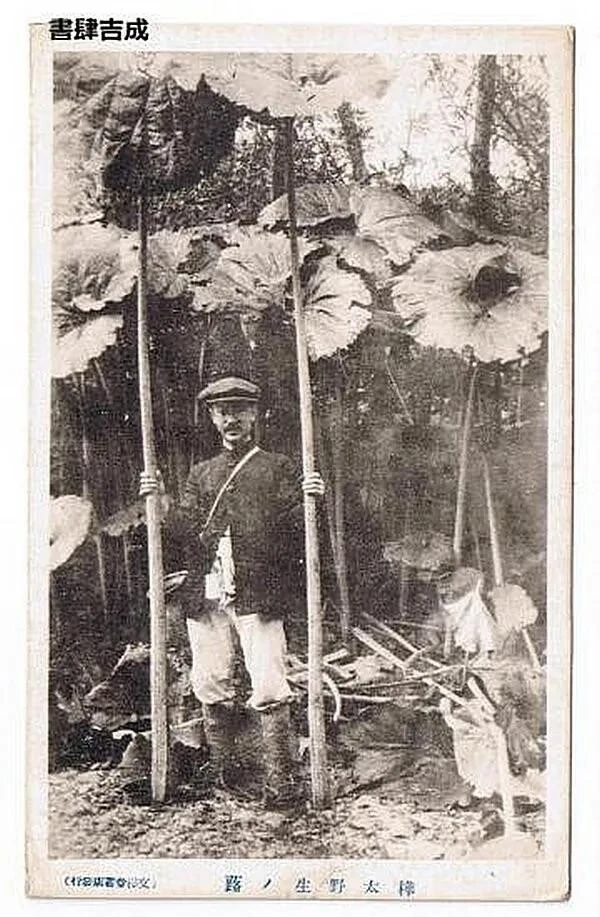 Совершенно привычный для нас лопух (белокопытник) не переставал удивлять японцев. В путеводителях и наборах открыток столетней давности он фигурировал как часть фантастической флоры острова.