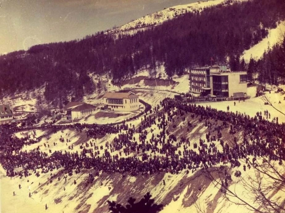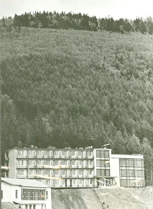 Гостиница «Горный воздух» была построена в январе 1971 года. Её первыми постояльцами стали спортсмены олимпийской сборной СССР, готовившиеся к Играм в Саппоро. В здании имелись столовая, большой зал для мероприятий и комфортабельные номера на четырёх этажах с видом на трамплины и Южно-Сахалинск. Судьба гостиницы оказалась недолгой: её забросили в 1990-е годы и окончательно снесли в 2000-х.