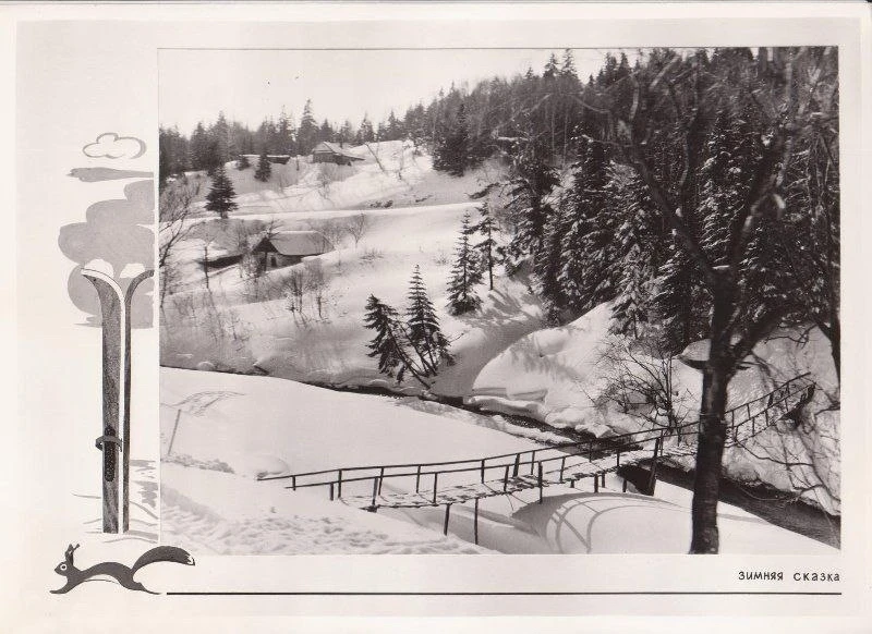 Автомобильный мост через Ямада-но-сава (Быструю) и Рутака-гава (Лютогу) был построен японцами во времена Карафуто в ущелье Хосёнко. Рядом виден подвесной пешеходный мост через нынешнюю Лютогу. Скалу, нависавшую над мостом, называли «Орлиное гнездо». В 1975 году построили новый мост, который был разрушен тайфуном «Филлис» в 1981 году.