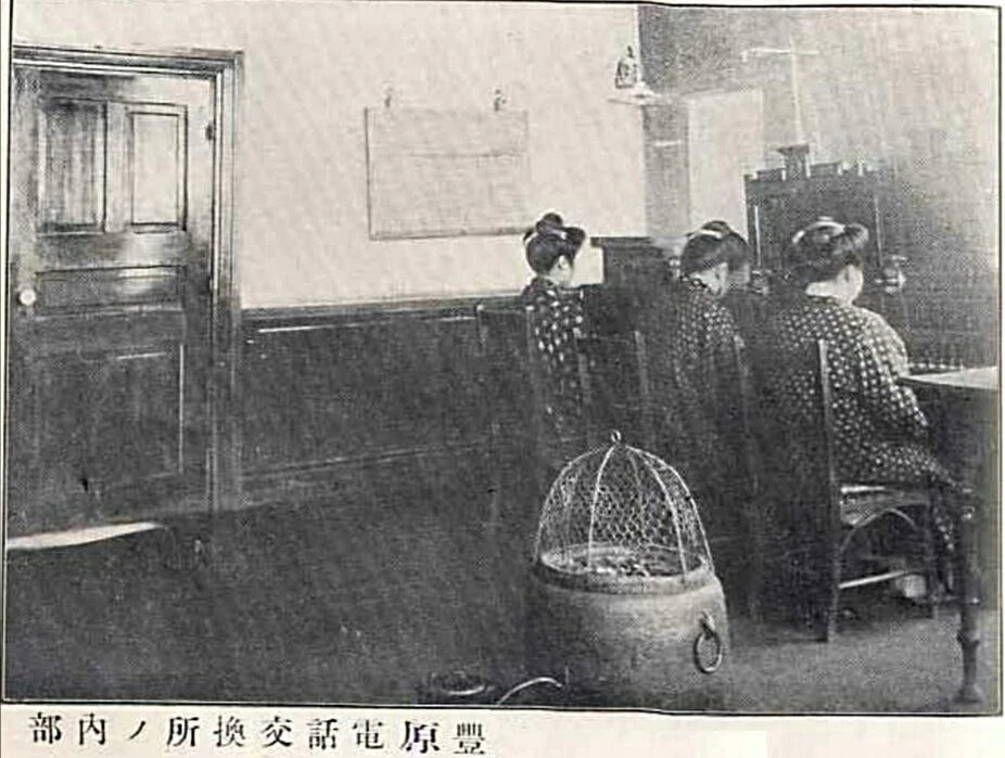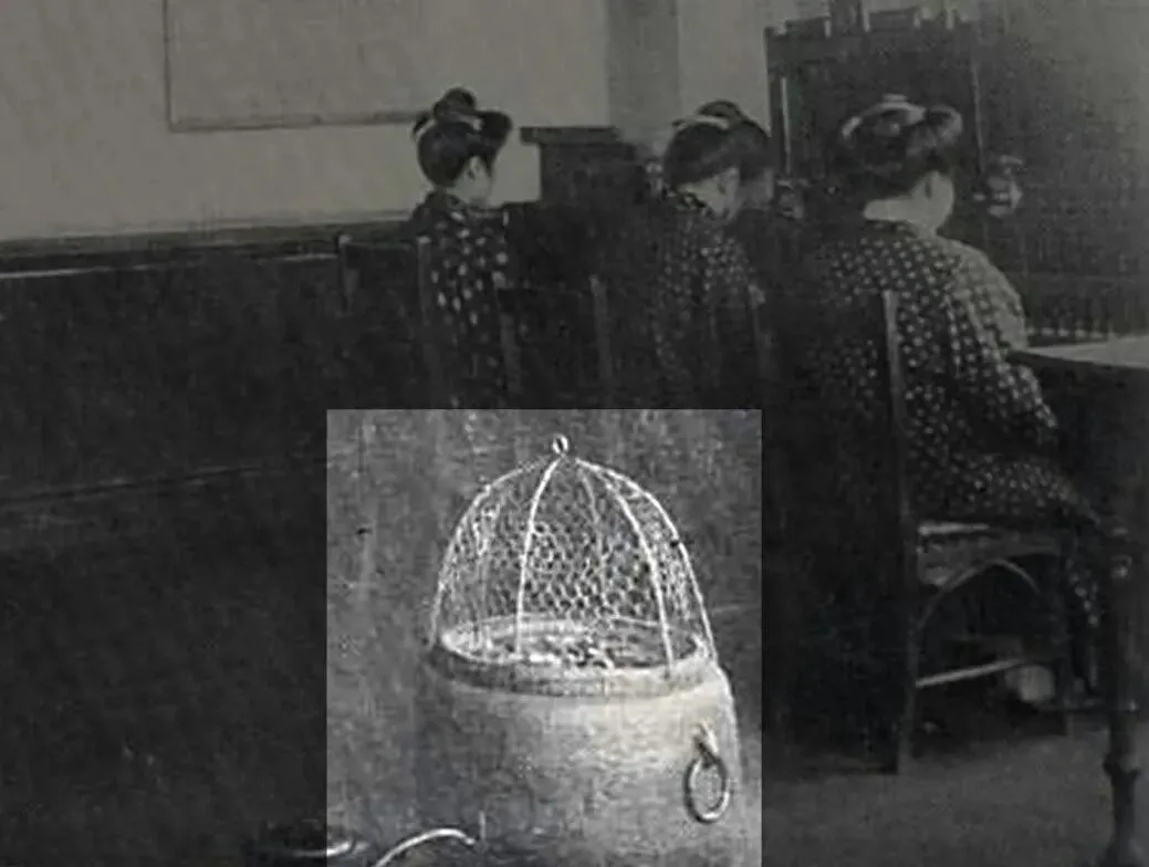 За женщинами стоит 'Хибати' — переносная жаровня для обогрева помещений в японских домах, на древесном угле.