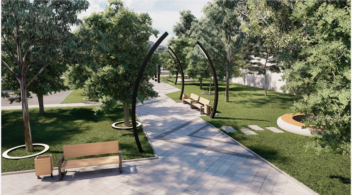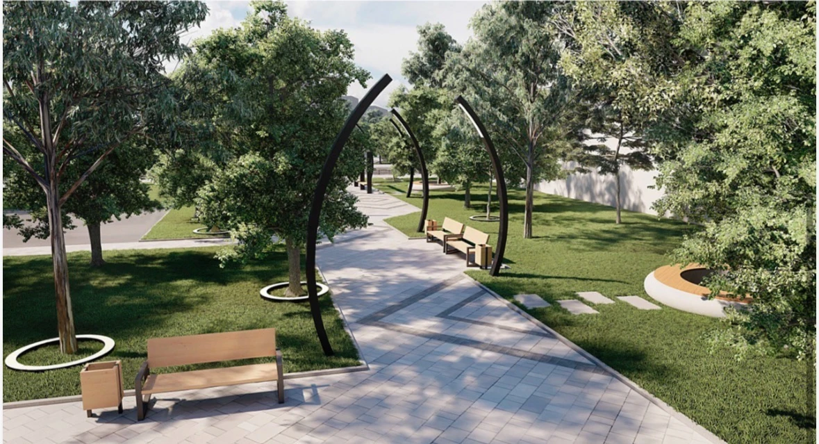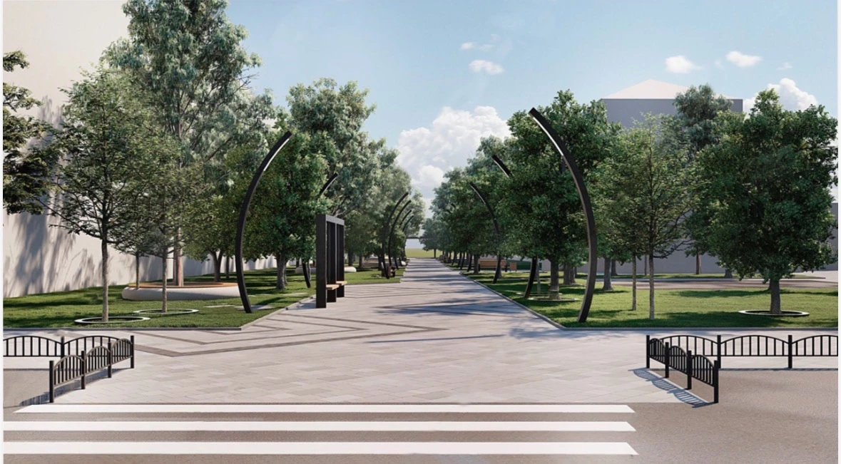 Заключительная часть самая протяженная (200 м) и будет со своей концепцией (на фото). В проекте предусмотрели перенос существующей арки с названием с ул. Победы на ул. Кирова. То есть, обозначаться «Аллея молодёжи» будет в начале и конце. Почему в свое время в 2023 году вторая арка оказалась на ул.Победы никто сейчас пояснить не может, понятно, что протупили недоглядели. Но ошибка будет исправлена практически без дополнительных затрат.