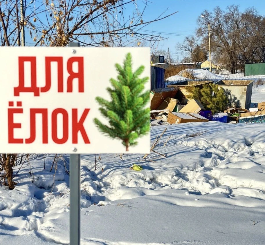 Места для складирования ёлок определены и обозначены специальными табличками.