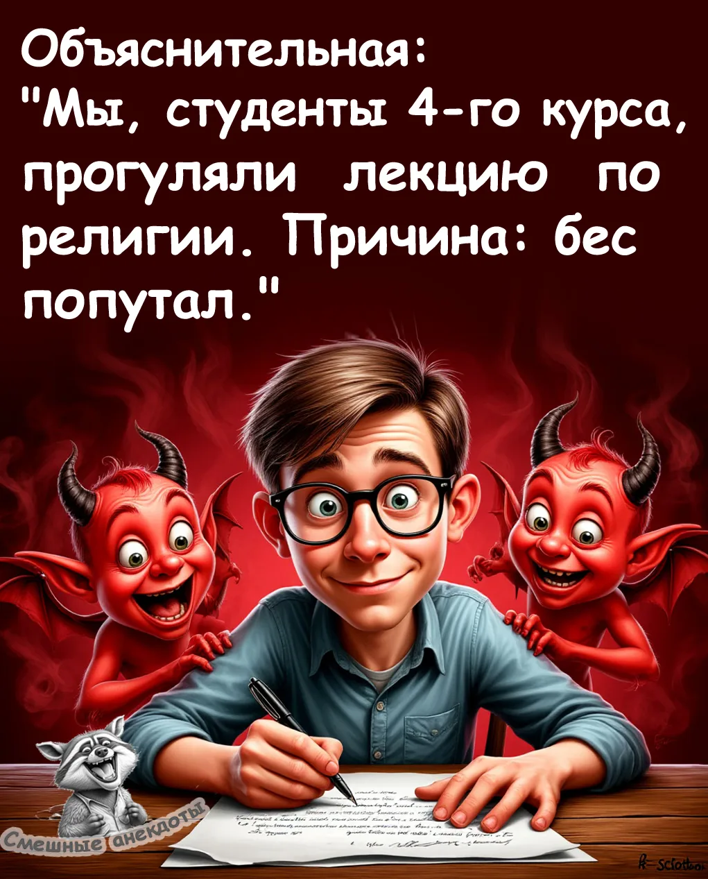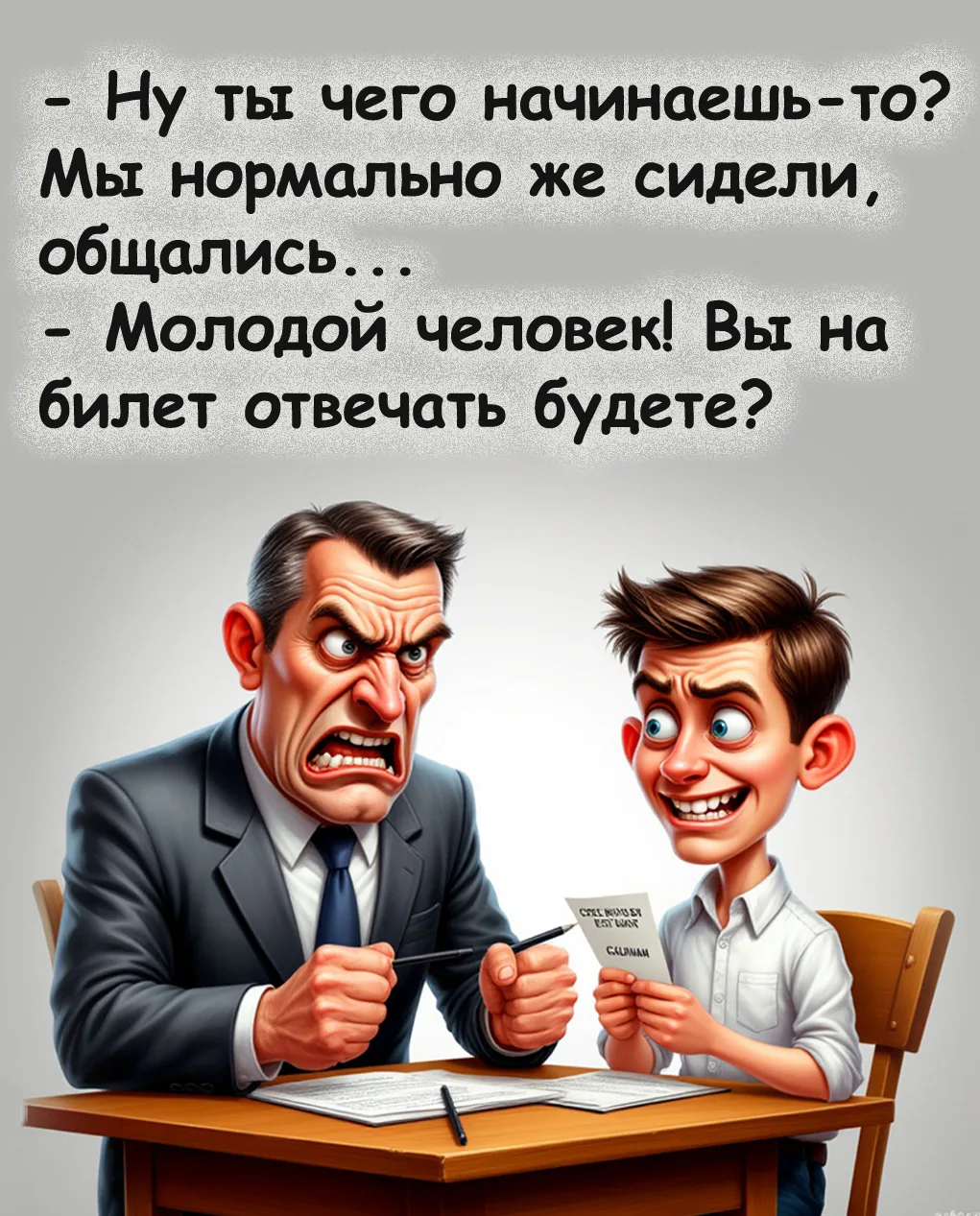 - Ребят, давайте монетку кинем. Если орлом упадет, то пивка выпьем, если решка - то водочки. Если ребром упадет - доспим, ну а если в воздухе зависнет, тогда учиться пойдем...