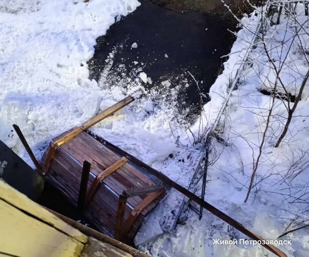 🧊 Сосулька упала и снесла крышу подъезда дома в Петрозаводске