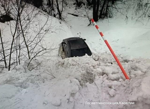 🚔 Женщина-водитель сошла с трассы и закопалась в сугроб в Олонецком районе