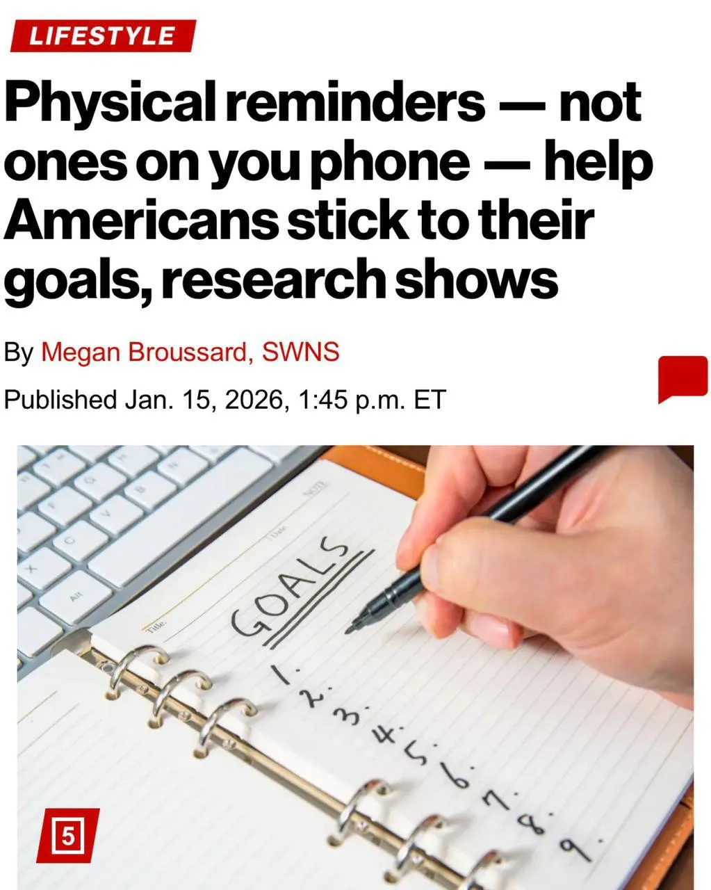 Бумажные заметки победили цифру. Исследование показало: тем, кто записывает цели в телефоне или на компьютере, сложнее их достигать — 41% пользователей просто забывают, что и где фиксировали.