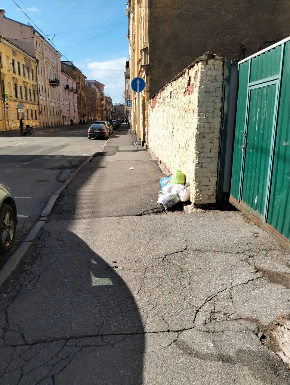 Несанкционированная свалка 4-й день лежит. Также можно на этом фото обратить внимание на состояние тротуара улицы и фасада дома! Лабутина, 7.