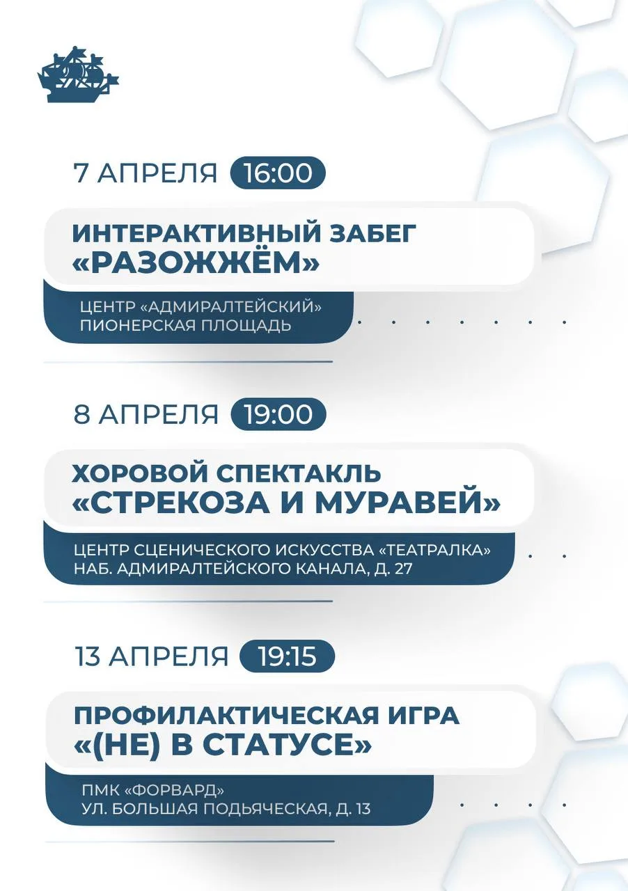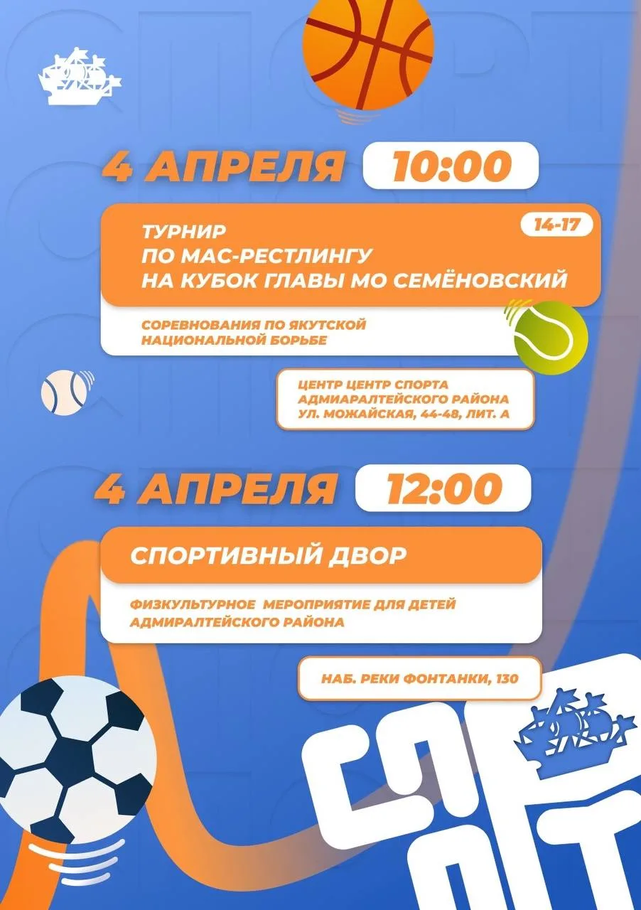 💫 Анонсы молодёжных и спортивных событий в Адмиралтейском районе на 4 апреля
