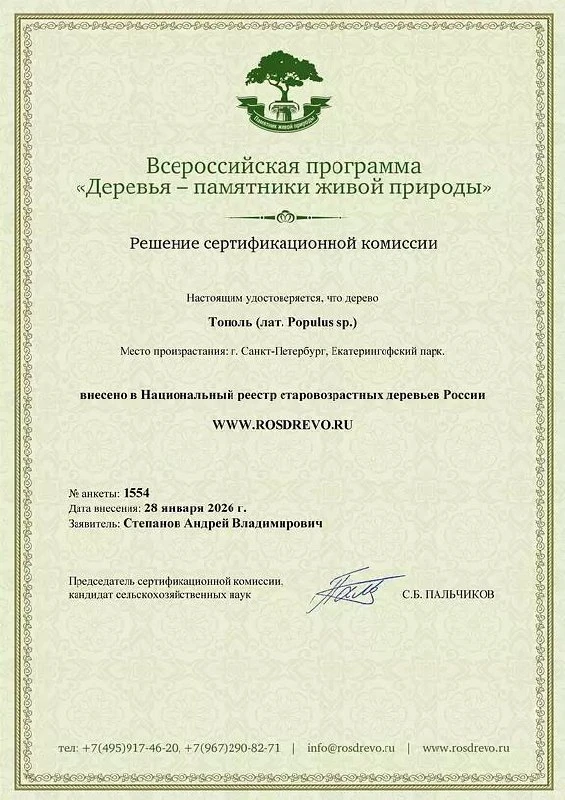 🌳 Тополь из парка Екатерингоф внесен в национальный реестр старовозрастных деревьев России