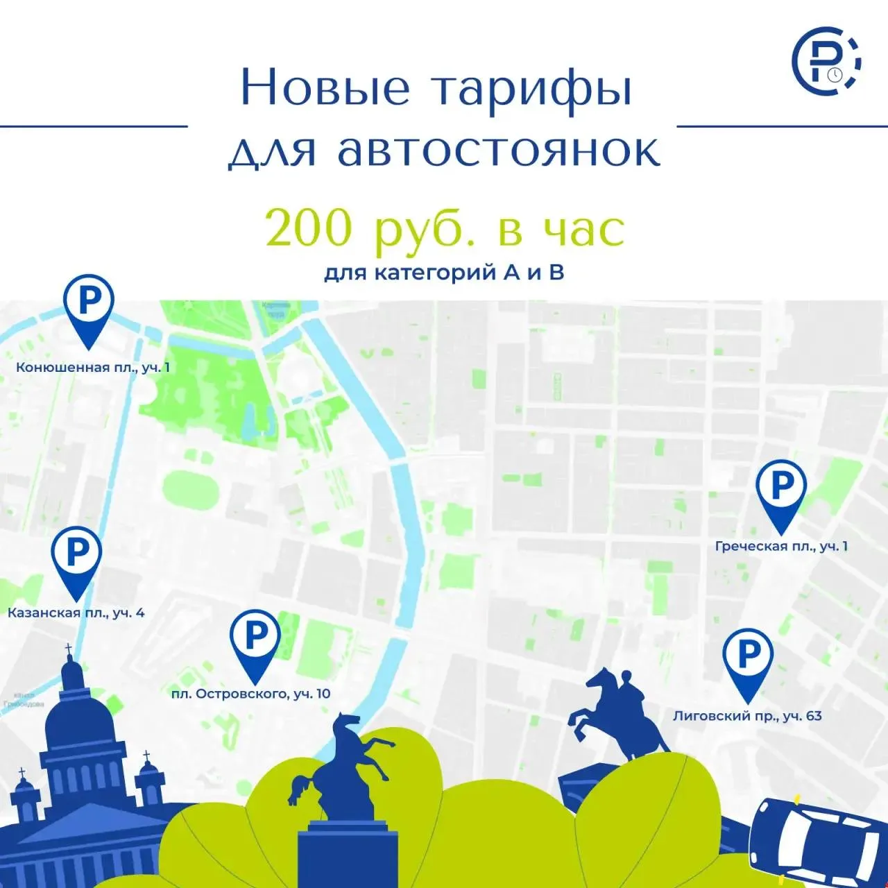 Стоимомть изменилась со 150 руб./час для ТС категорий A и B до 200 руб./час по адресам: