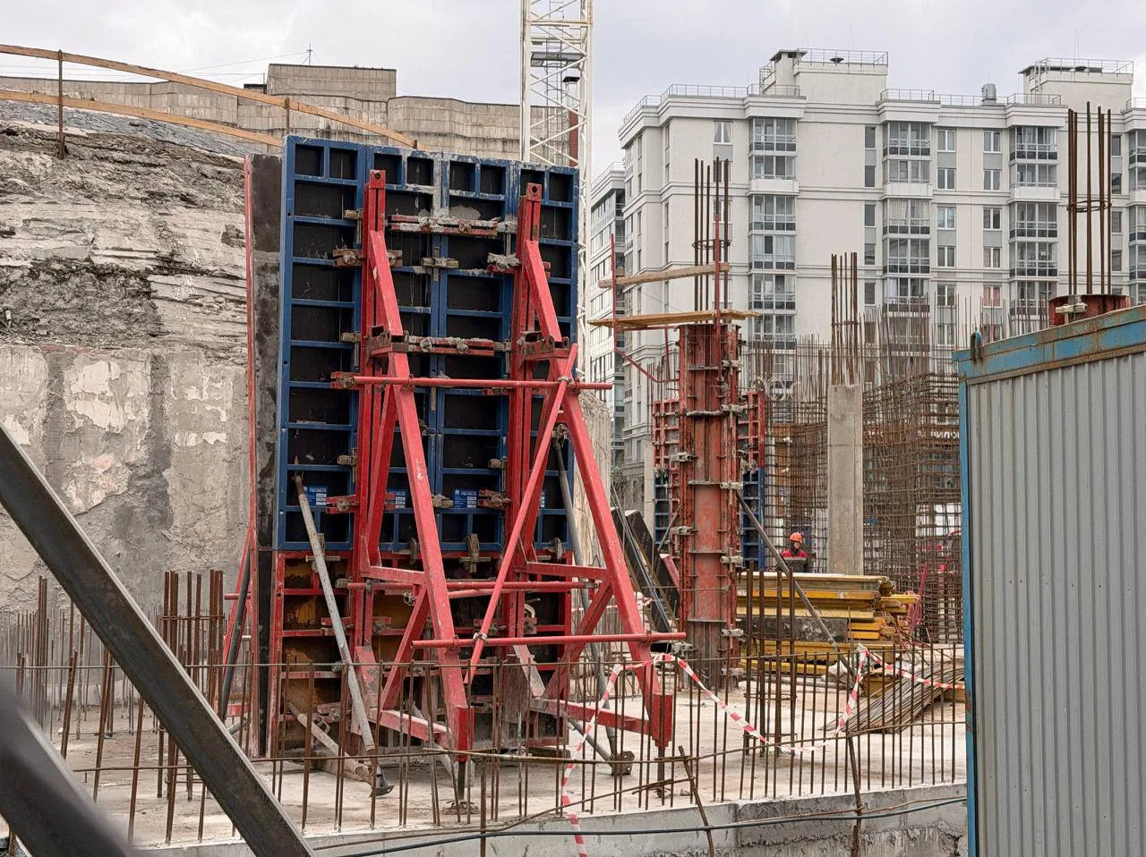 На площадке уже приступили к возведению первых колонн наземной части нового вестибюля — они начали подниматься над уровнем земли.