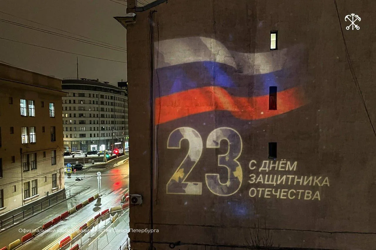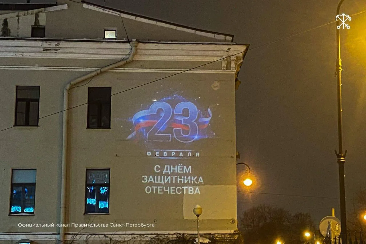 Световые проекции украсили здания города ко Дню защитника Отечества
