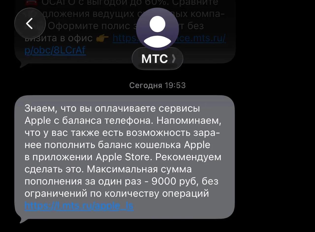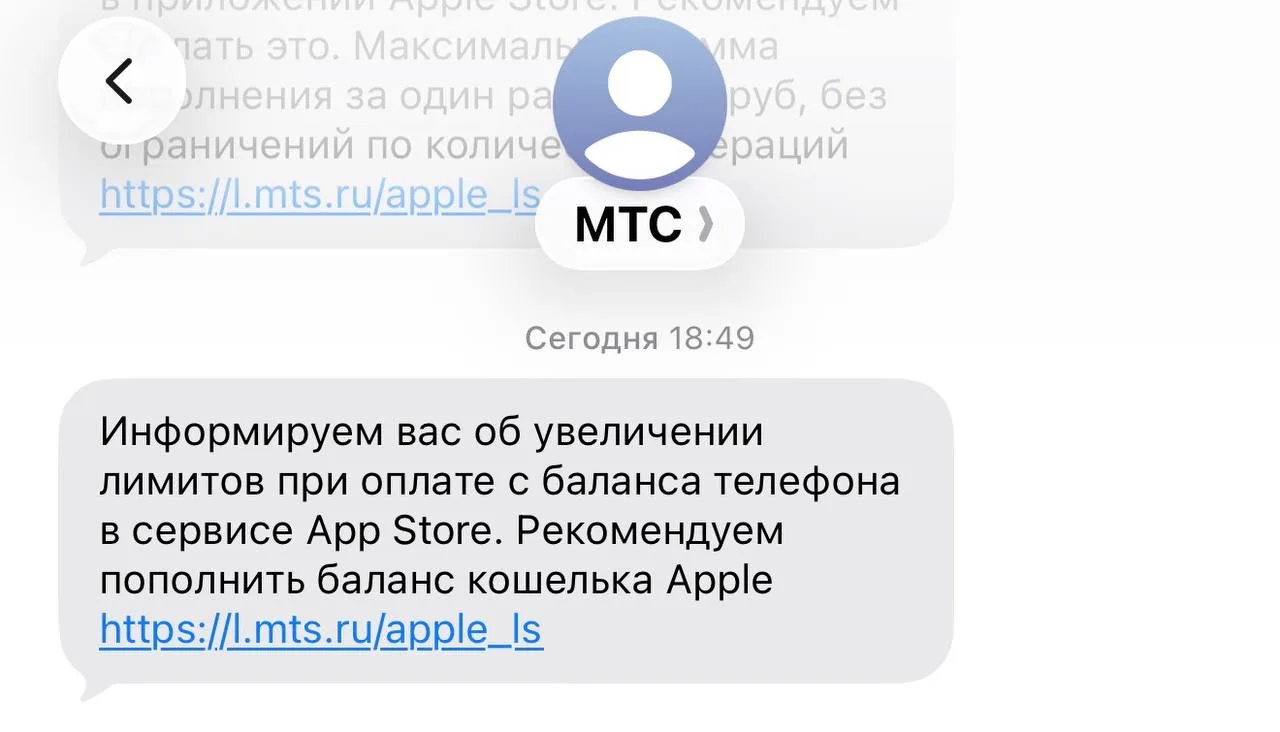МТС сообщает об увеличении лимитов при оплате с баланса телефона в App Store и рекомендует пополнить его сейчас