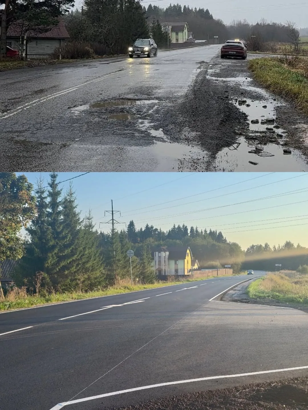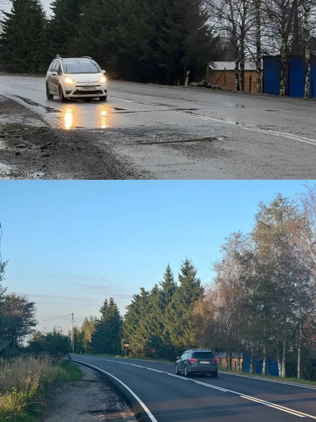 Вчера, возвращаясь от бабушки из Кингисеппа, решил, что нужно дорогу проверить. Что с ней произошло — на фото в карусели. Участок длиной километров в 15 полностью укатали в новый идеально ровный асфальт. Ни одной ямы теперь там нет.