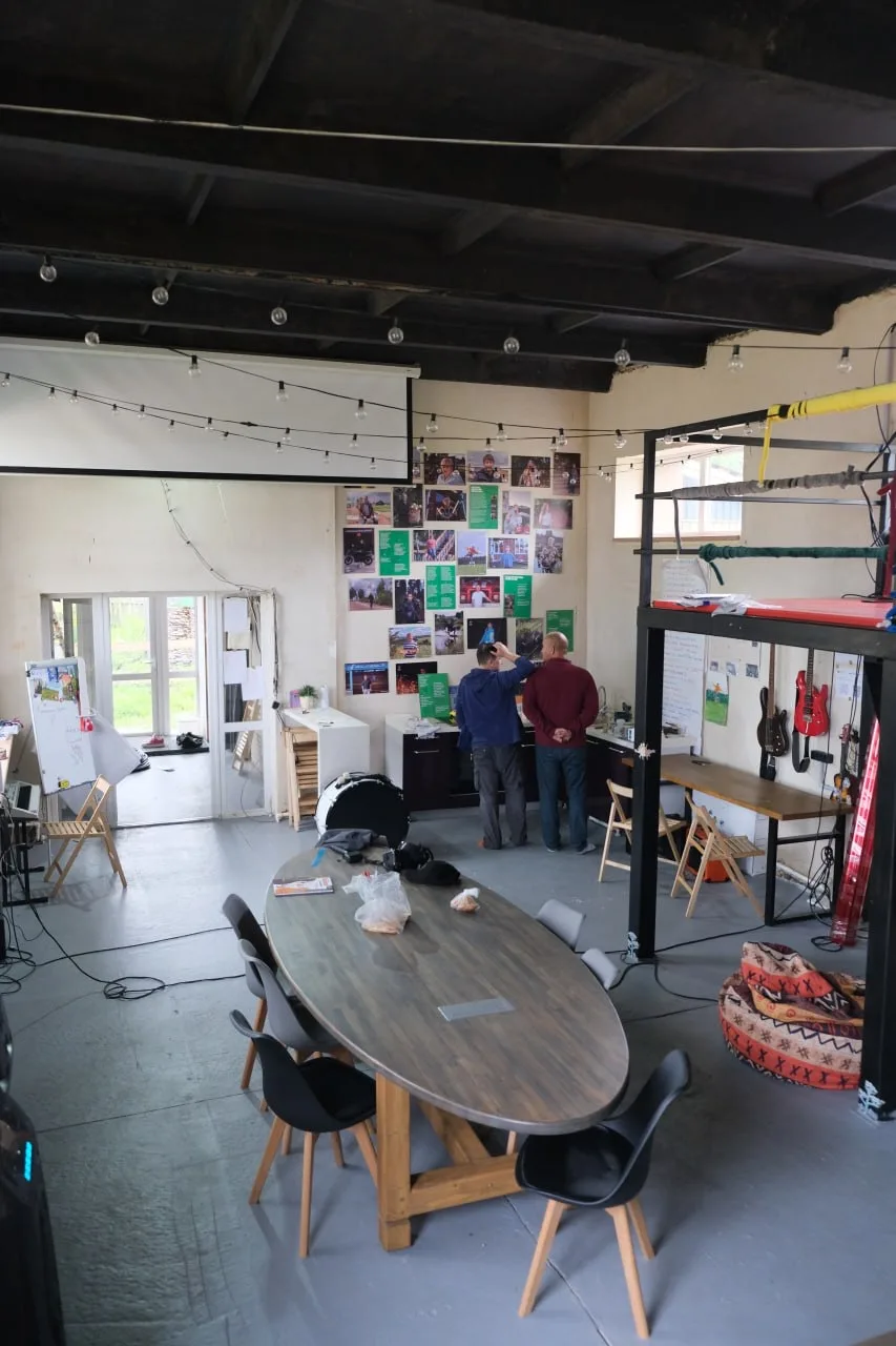 В общем, Галя потихонечку и постепенно начала работать с детишками и подростками, договорилась с администрацией и взяла в аренду здание старой заброшенной кочегарки (на первом фото). Примерно 2 года ушло у нее с ребятами на то, чтобы полностью это здание восстановить и превратить в местный сельский клуб. Так у детей появилась возможность реализовывать свое творчество, участвовать в мастер-классах, заниматься музыкой и проектированием, летом приводить село в порядок, а зимой заливать огромный каток и делать ледяные скульптуры.