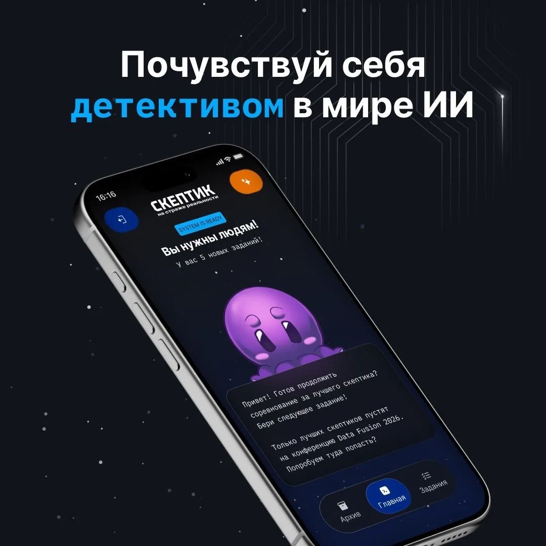 К конференции Data Fusion 2026 ВТБ представил для клиентов онлайн-банка интерактивную игру «Скептик на страже реальности» — детективный квест о мире, где ИИ становится частью повседневной жизни, но не всегда действует прозрачно.