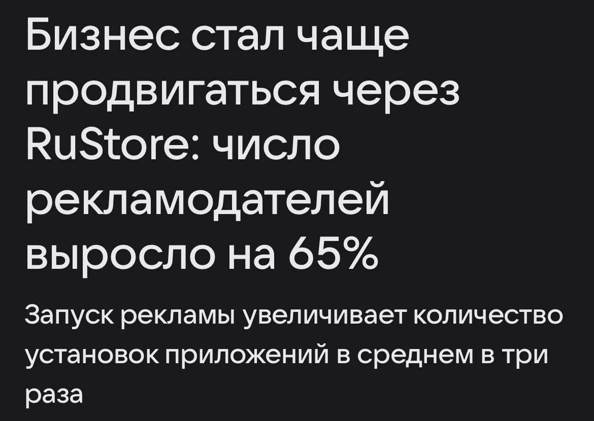 Вывод из всего этого, на самом деле, простой: RuStore — это уже не просто еще один «дополнительный канал», а точка роста, где ещё есть относительно низкая конкуренция и понятная отдача от рекламы.