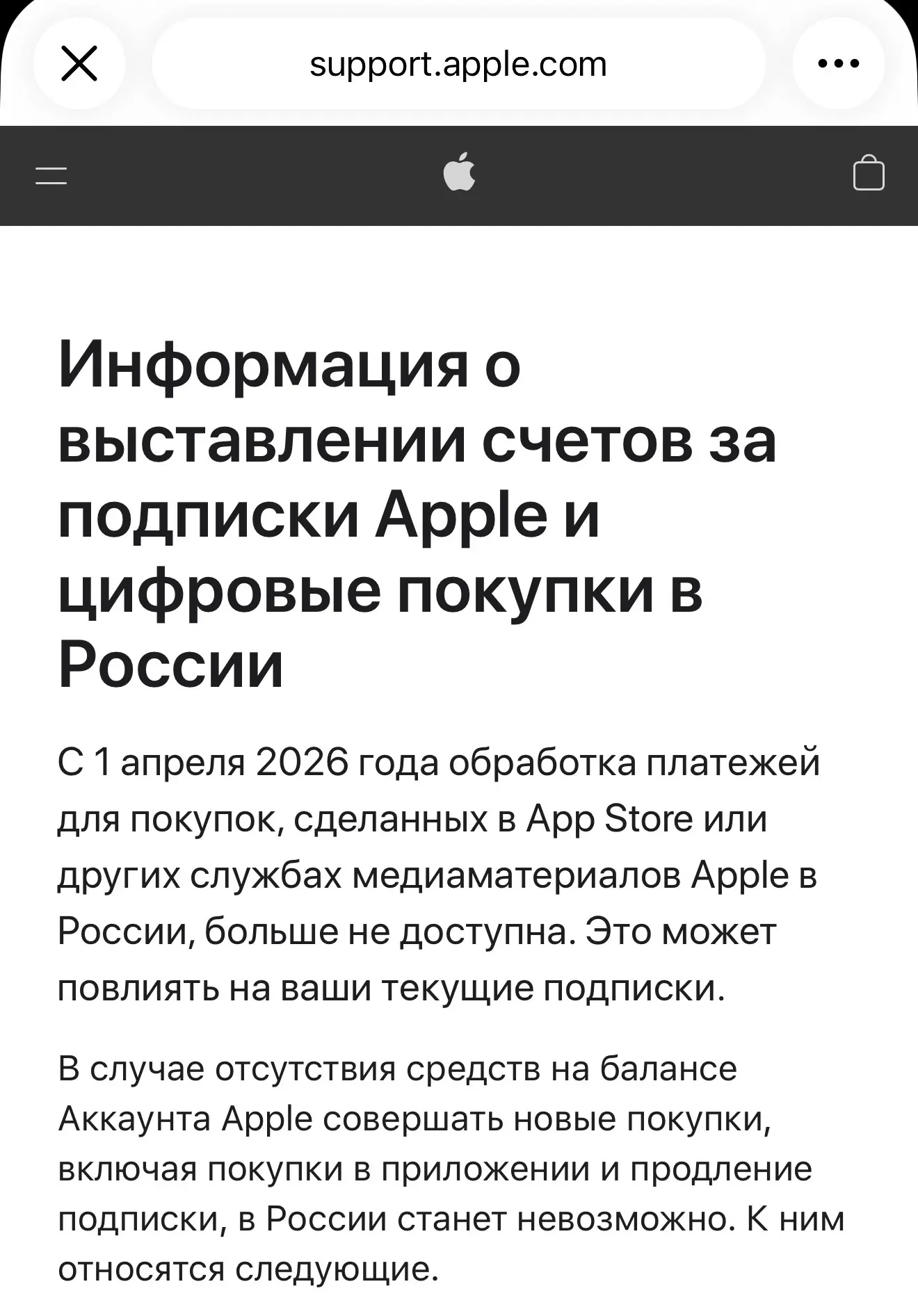 ⚡️Минцифры получили указание от правительства с 1 апреля отключить возможность пополнения баланса Apple ID с мобильного счета — источники РИА. Говорят, что делается это для ужесточения борьбы с VPN-сервисами. В министерстве полагают, что подобная мера может принудить Apple вернуть российские приложения в AppStore