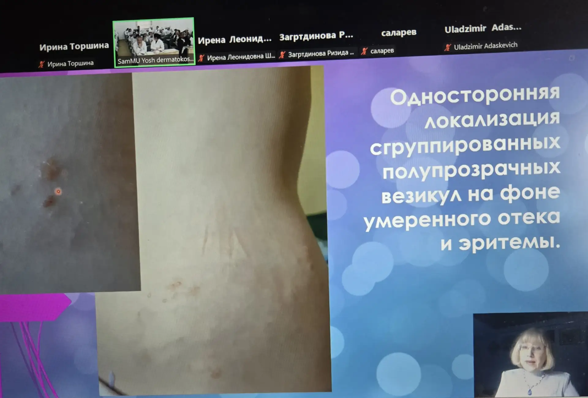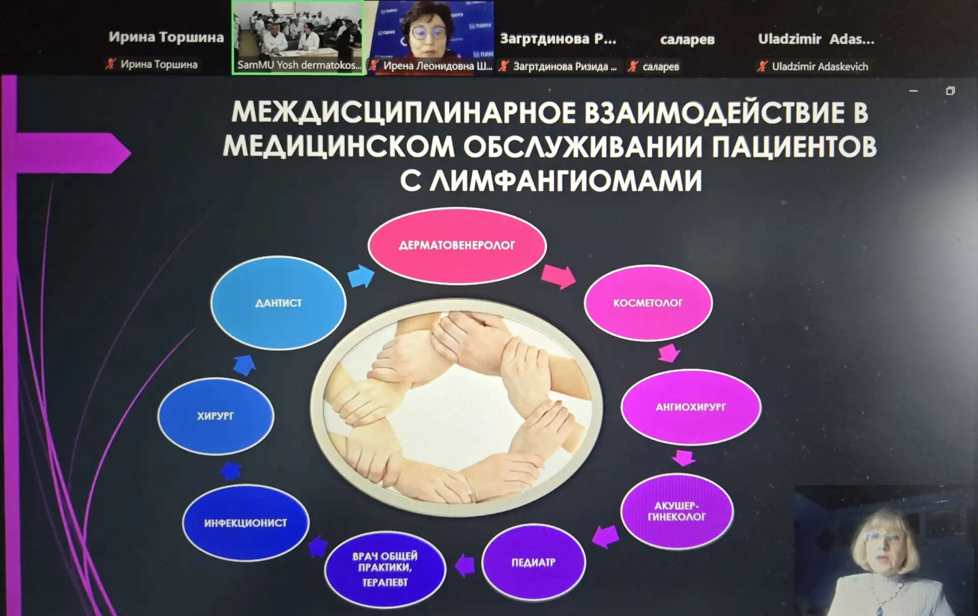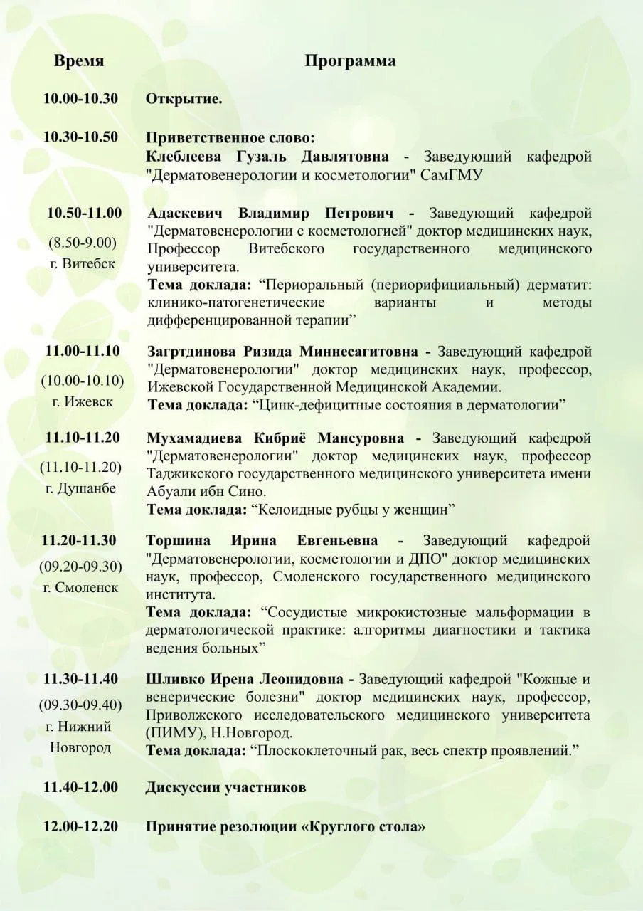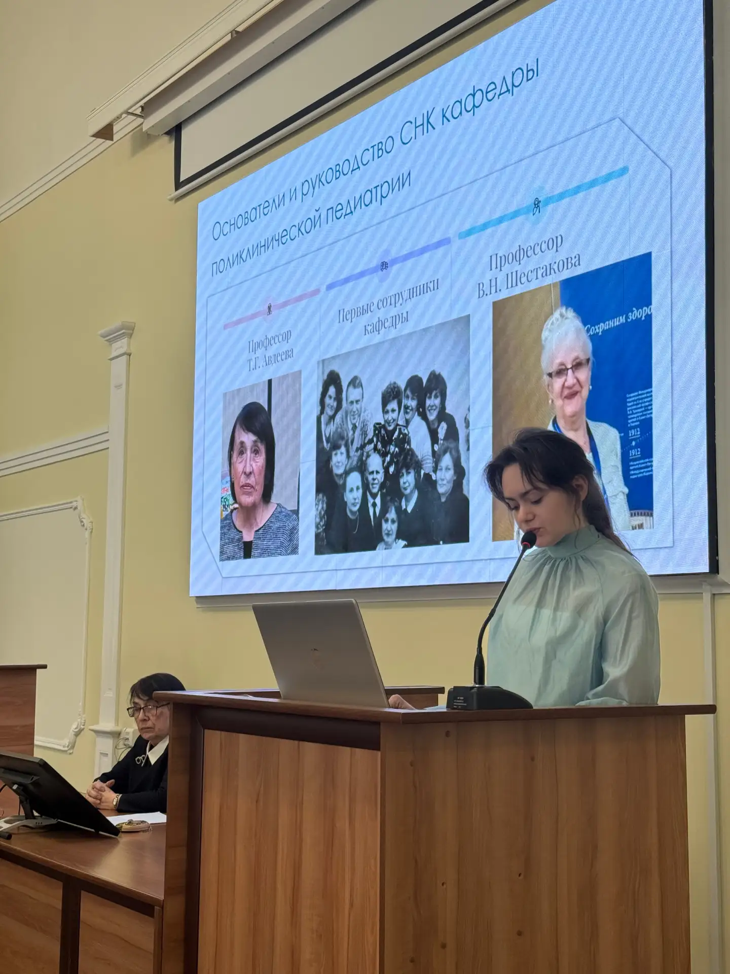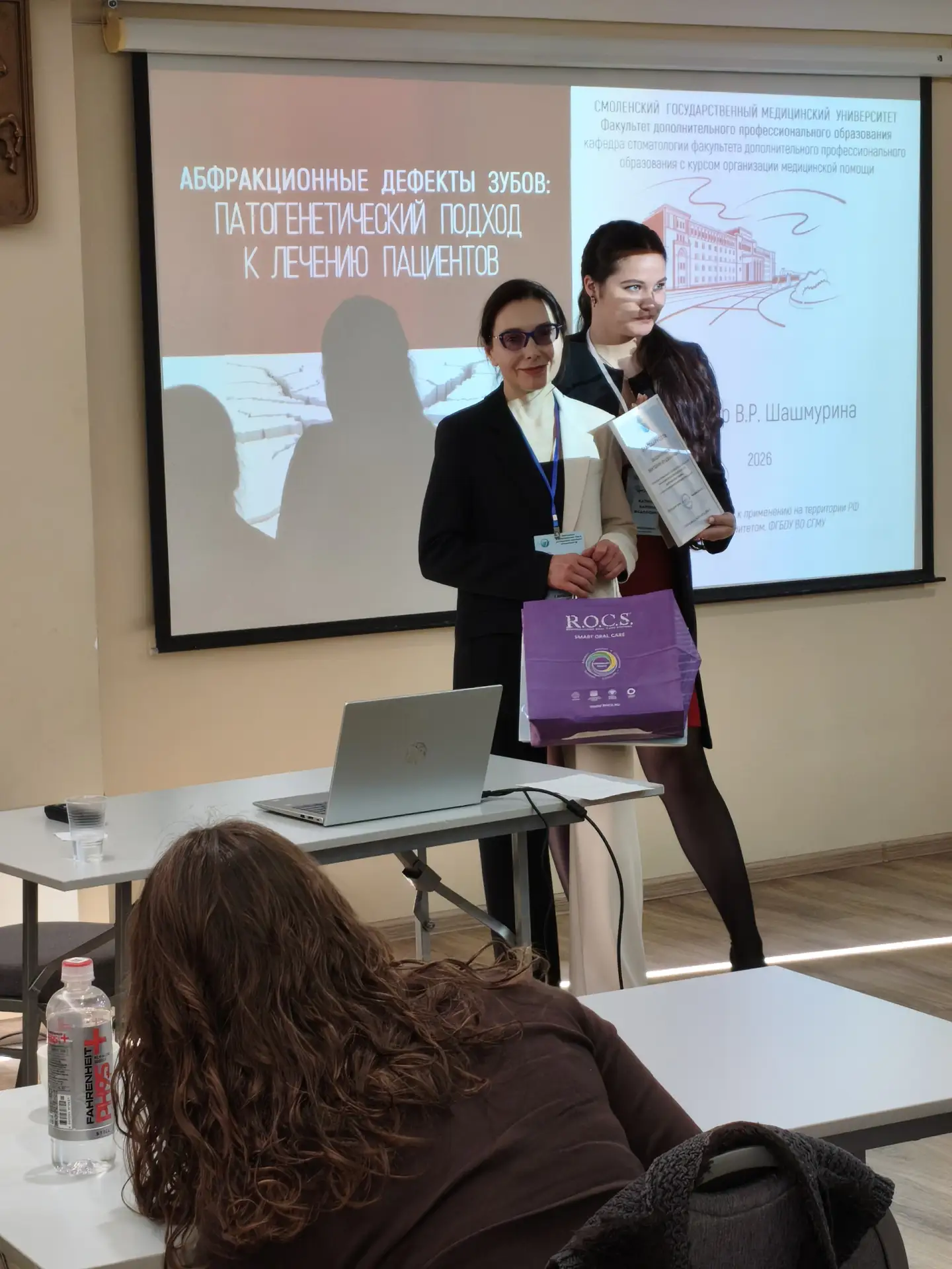 В. Р. Шашмурина, д.м.н., профессор, заслуженный врач России, заведующая кафедрой стоматологии с курсом организации медицинской помощи ФГБОУ ВО СГМУ Минздрава России выступила с докладом на тему: «Патогенетический подход к лечению пациентов с абфракционными дефектами зубов». Доцент, к.м.н. Мишутина О.Л. в своем выступлении поделилась практическим опытом применения силантов для профилактики кариеса зубов у детей, ассистент Девликанова Л.И. совместно с д.м.н.. профессором В.Р. Шашмуриной и к.б.н. И.А. Эйдельштейн представила доклад на тему: «Мониторинг микробиоценоза рта в системе планирования и прогнозирования лечения воспалительных заболеваний пародонта».