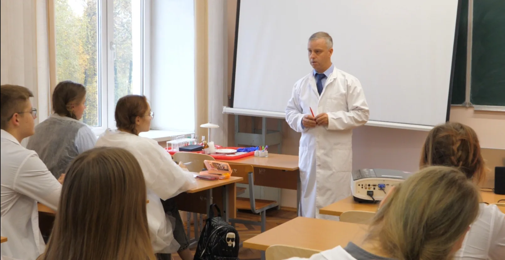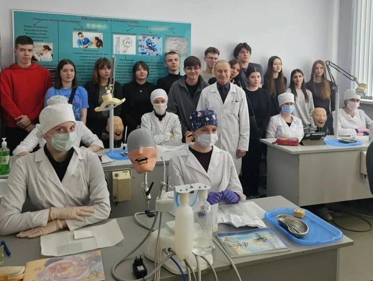 Экскурсия продолжилась осмотром учебных корпусов и научных лабораторий под руководством сотрудников Центра довузовской подготовки. Школьники побывали в фантомно-симуляционных классах кафедры пропедевтической стоматологии на занятии студентов 1 курса стоматологического факультета, где заведующий кафедры, доктор медицинских наук Владимир Григорьевич Морозов рассказал об обучении врачей – стоматологов.