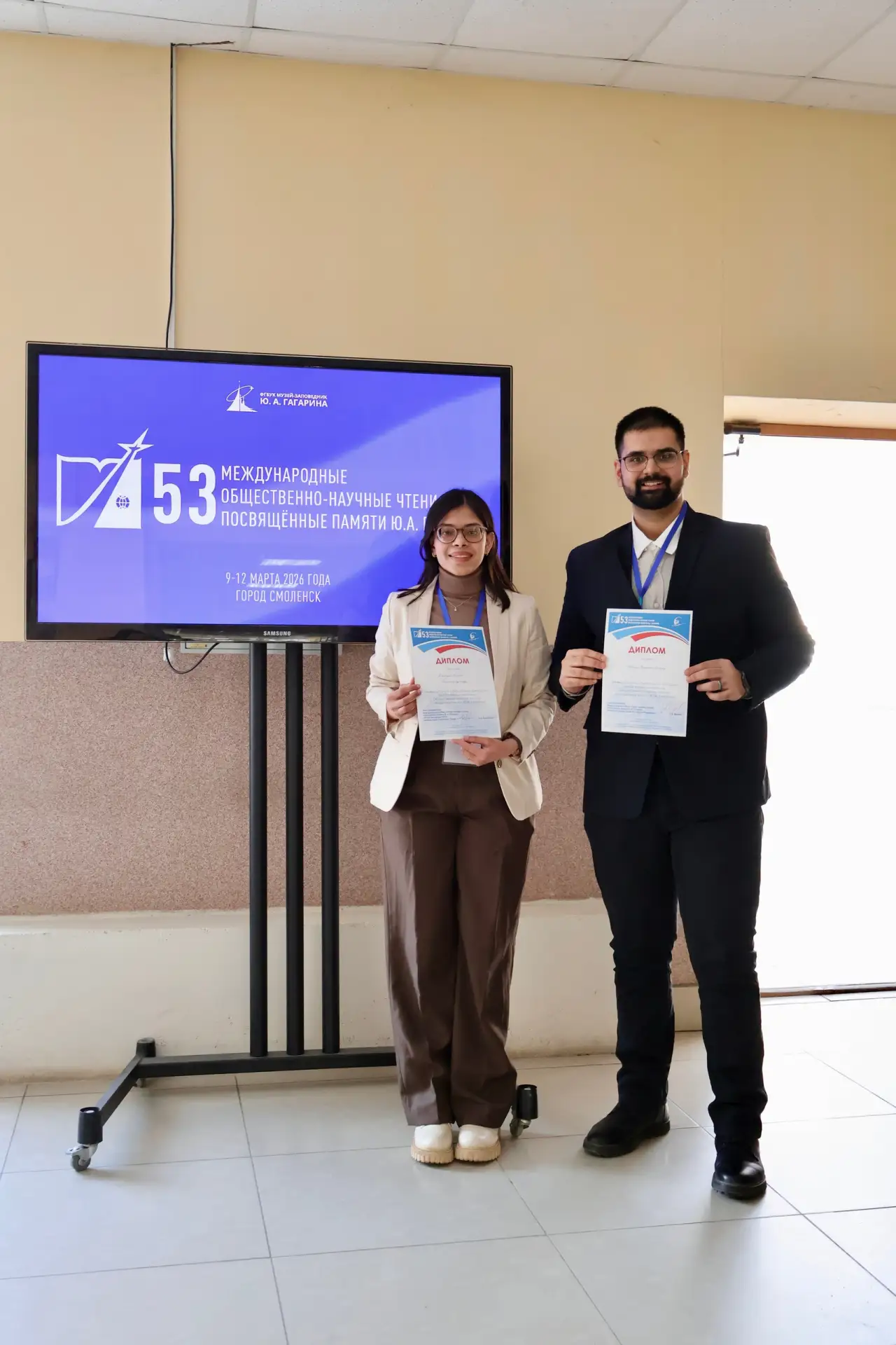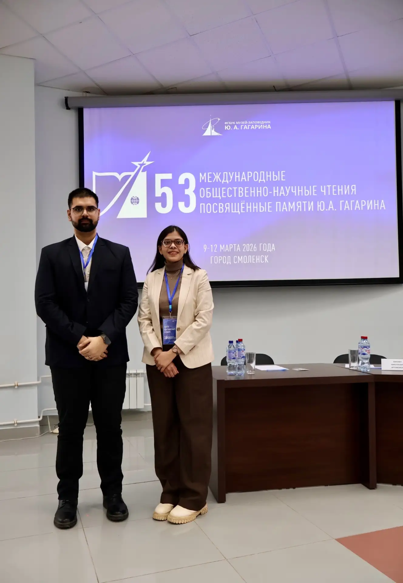 11 марта на базе Смоленского государственного университета состоялось заседание международной секции №8 в рамках 53-международных, общественно-научных чтений, посвященных памяти Ю.А. Гагарина. Факультет иностранных учащихся СГМУ на мероприятии представили студенты 5 курса: Десаи Ведант Мехул подготовил доклад «Роль космической медицины в подготовке индийских космонавтов»; Кешари Ешита Сантошкумар выступила с темой «Ракеш Шарма — первый индийский космонавт и национальный герой».