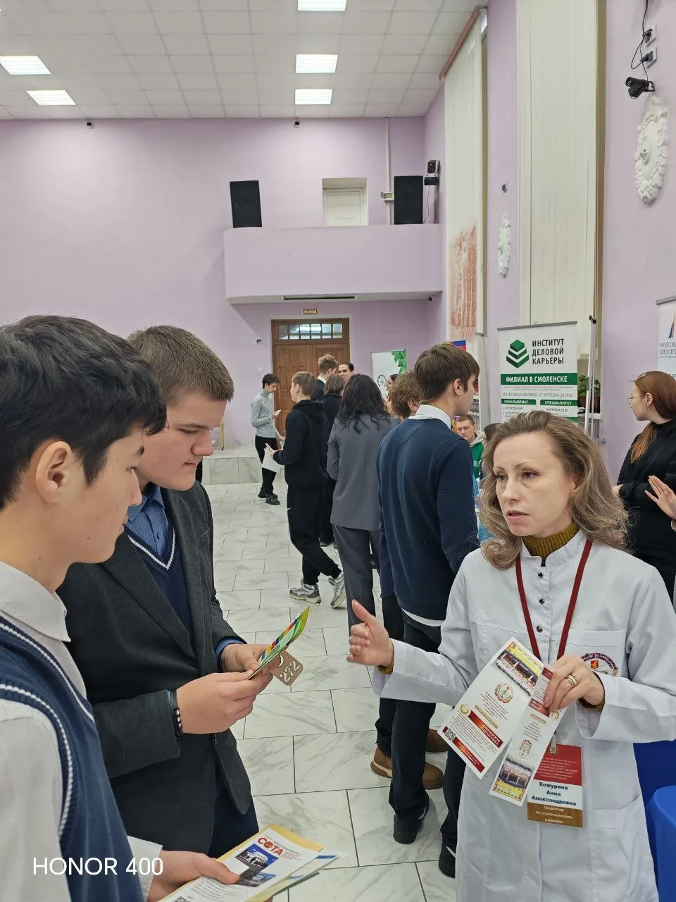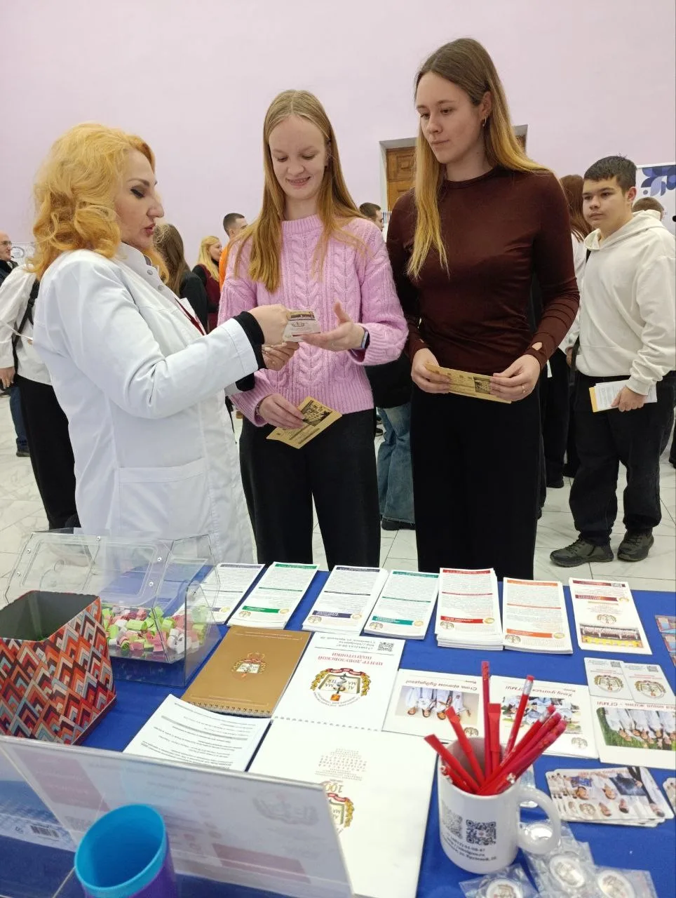 Для студентов СмолГУ развернули полноценную диагностическую зону. Будущие специалисты смогли измерить жизненно важные показатели: проверили артериальное давление, рассчитали индекс массы тела, прошли экспресс-проверку четкости зрения, получили консультации стоматологов.