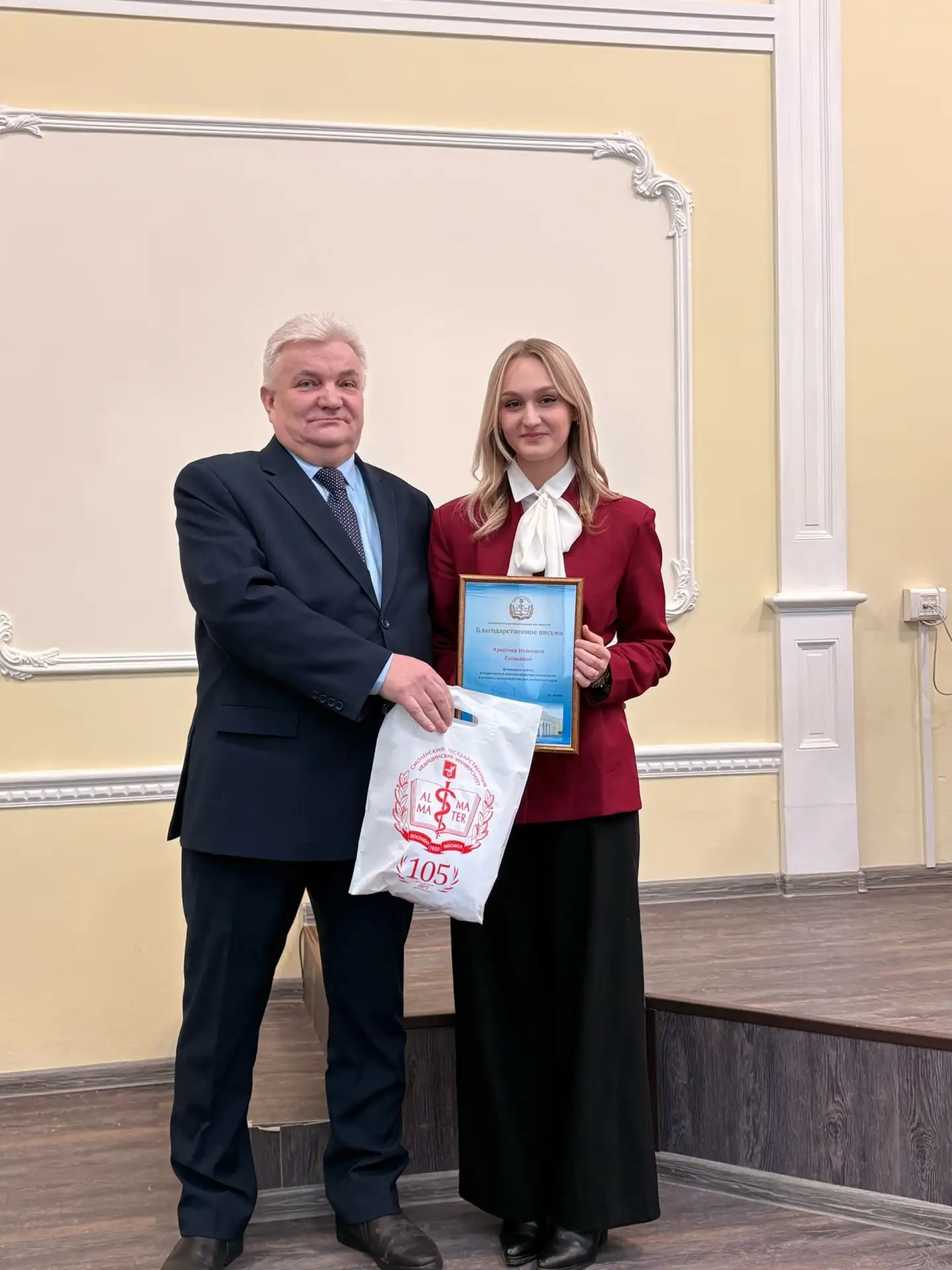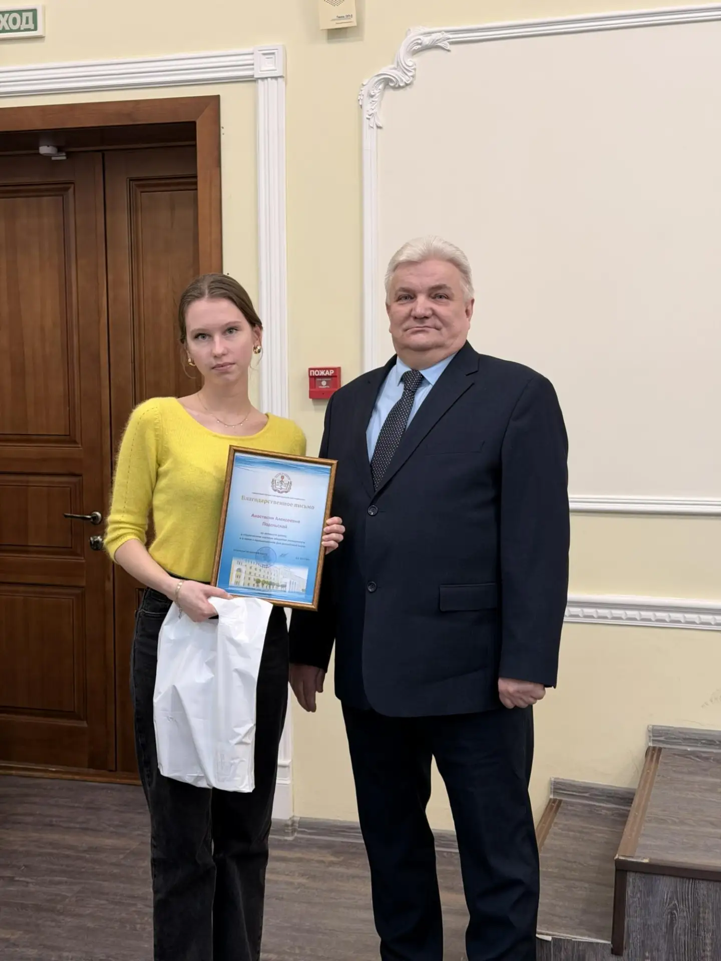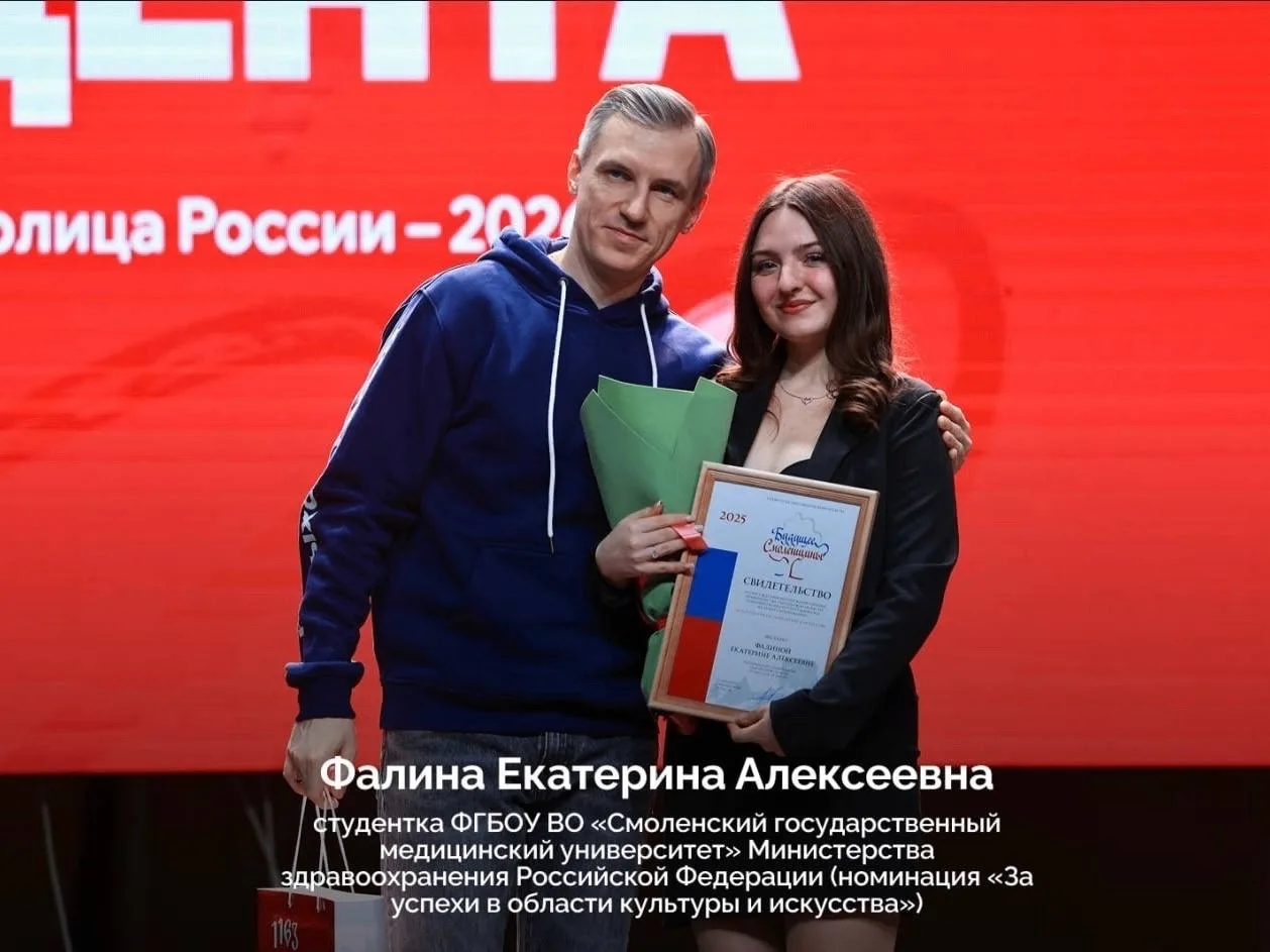 Среди награжденных – студентка 1 курса медико-биологического и гуманитарного образования СГМУ Фалина Екатерина Алексеевна в номинации "За успехи в области культуры и искусства".