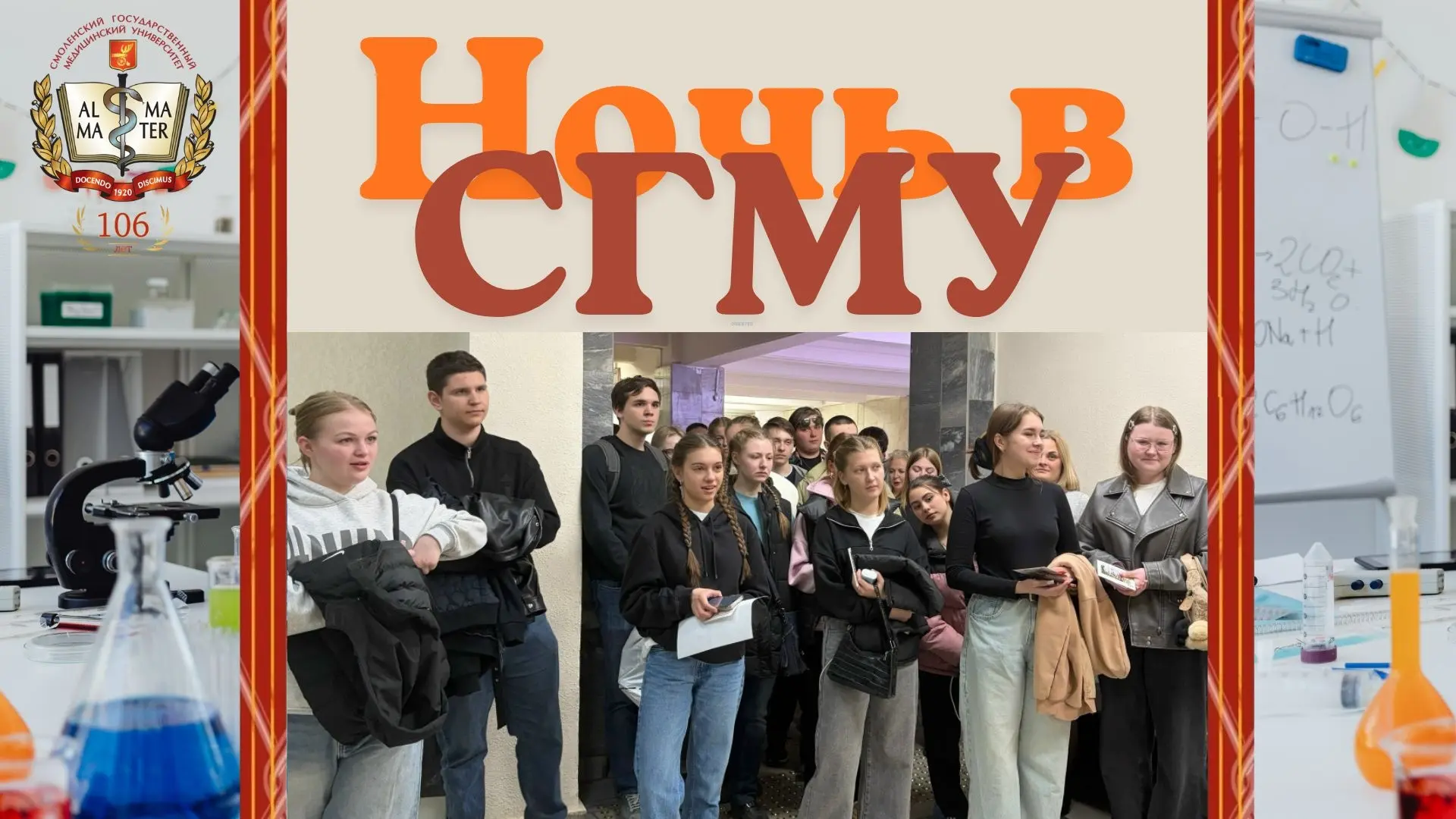 В Смоленском государственном медицинском университете в рамках празднования 106-летия со дня основания вуза прошло уникальное мероприятие для абитуриентов — «Ночь в СГМУ», в котором приняли участие школьники из разных регионов России. Будущие выпускники приехали в Смоленск даже из дальних регионов России, Пскова и Калининграда, чтобы не только увидеть вуз, но и погрузиться в атмосферу медицины, химии и биологии на всю ночь.