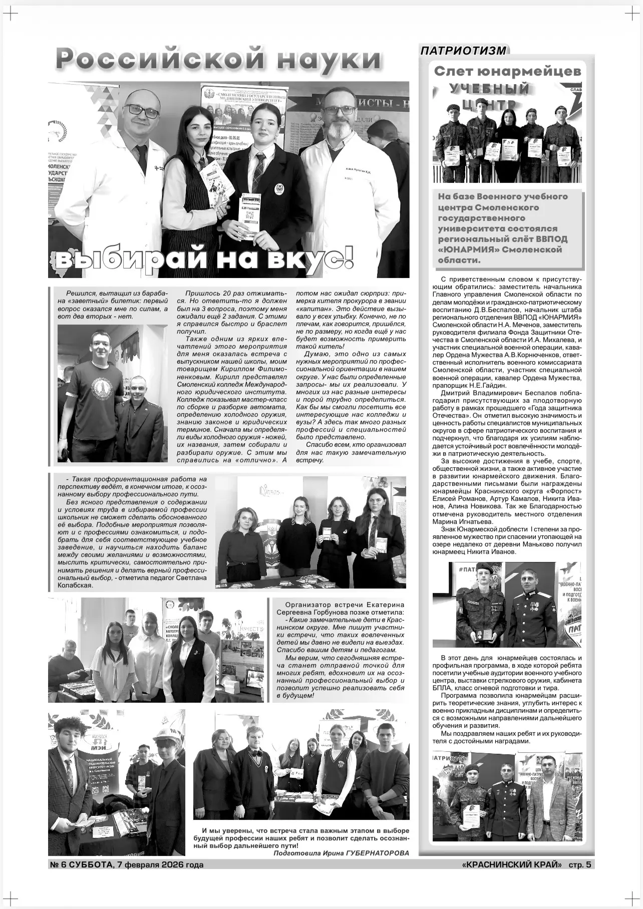 О важности профориентации и других мероприятиях для молодежи можно прочитать в свежем номере газеты «Краснинский край» (№6 от 7 февраля 2026 г.).